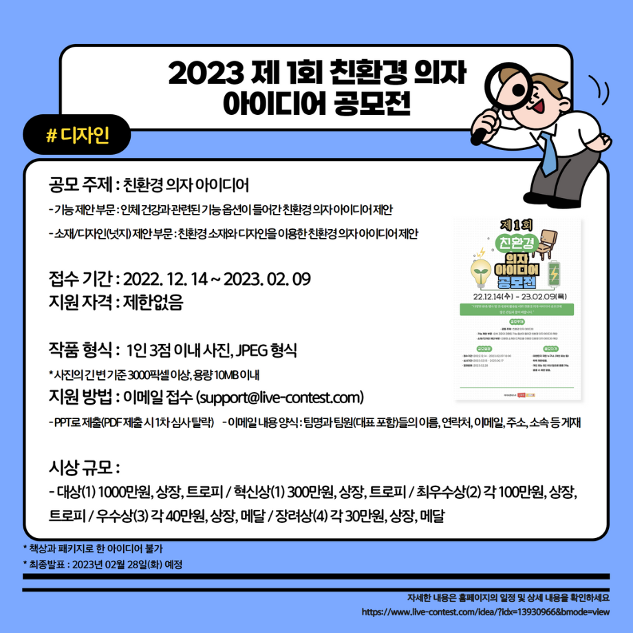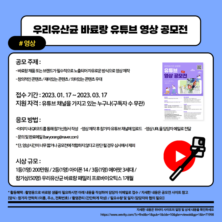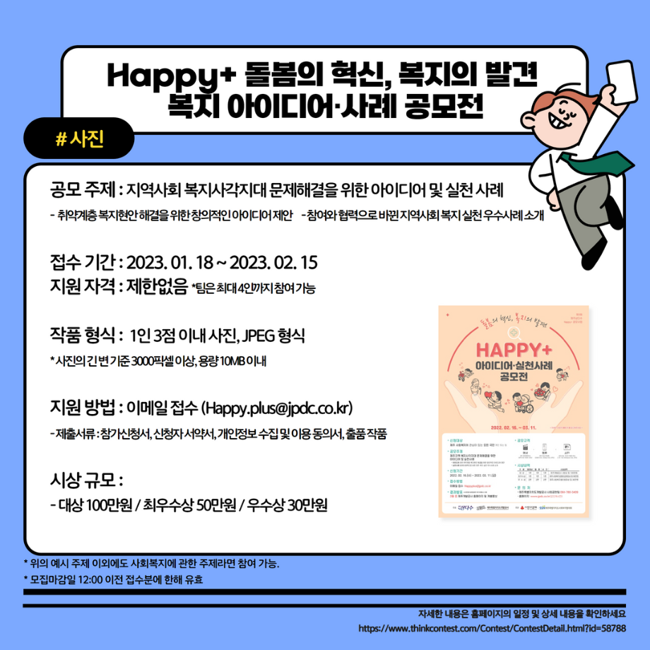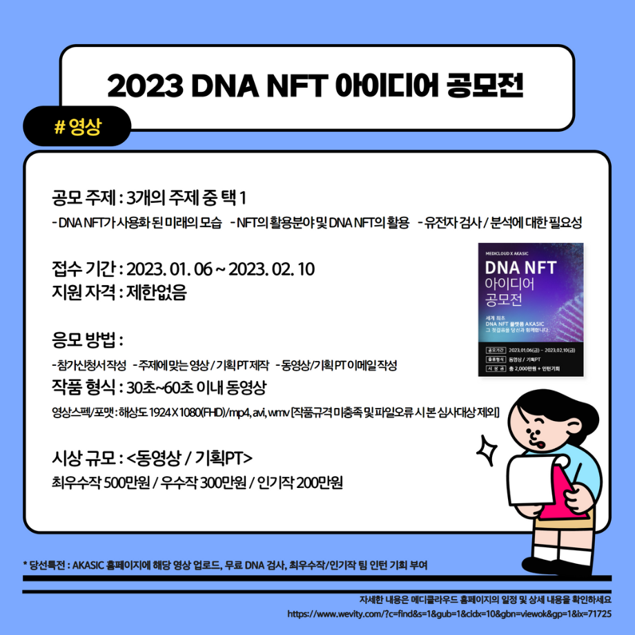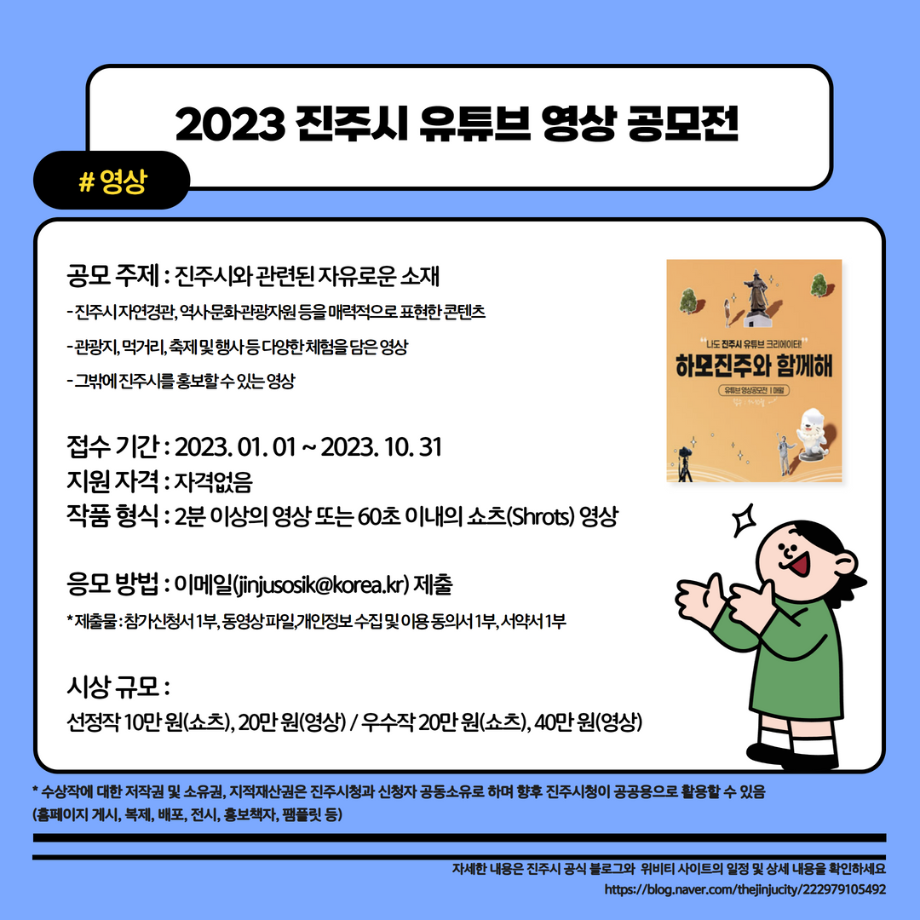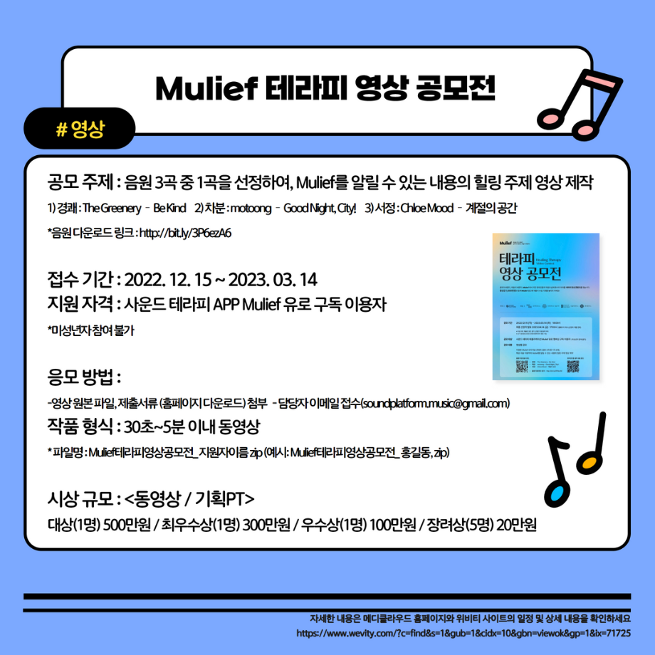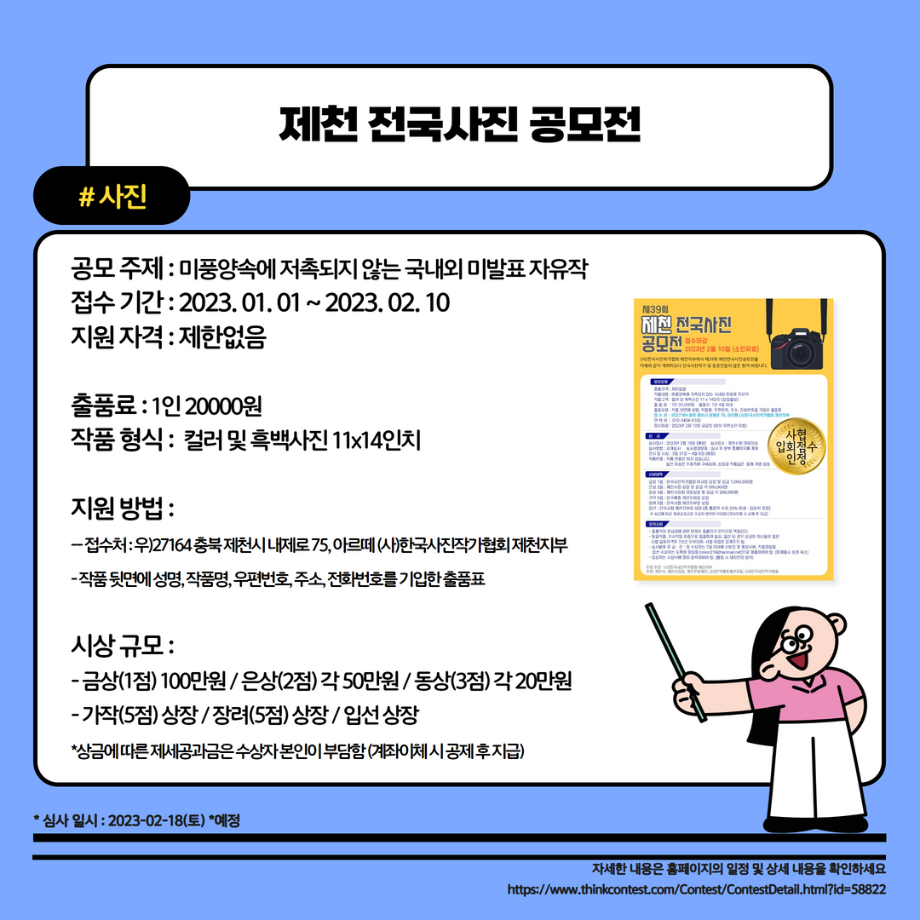 본문 시작 홈으로 MCC News 학과소개 교수소개 학과과정 MCC News MCC SNS 홈페이지가이드 학과 및 재학생 학과 및 재학생 교수 및 졸업생 미디어 정보통 학과 및 재학생 페이스북 트위터 프린트 2023학년도 교외 공모전을 알려드려요 디지털콘텐츠창작학과 4306 2023-02-01 2023학년도 영상, 디자인, 사진 분야의 공모전을 알려드립니다! 겨울방학 동안 다양한 공모전에 참여하며 경험을 쌓는 것은 어떨까요? 목록 이전세명인이라면 알아야 할 꿀팁 앱 다음 23학번 신입생들을 위한 디콘창 Q&A❓ 담당부서 : 미디어콘텐츠창작학과 담당자 : - 연락처 : 043-649-1741 최종수정일 : 2024-10-26 만족도조사 만족도 조사 이 페이지에서 제공하는 정보에 대하여 만족하시나요? 매우만족 만족 보통 불만족 매우불만족