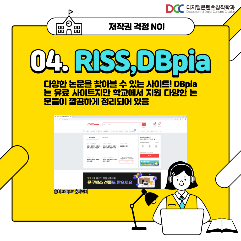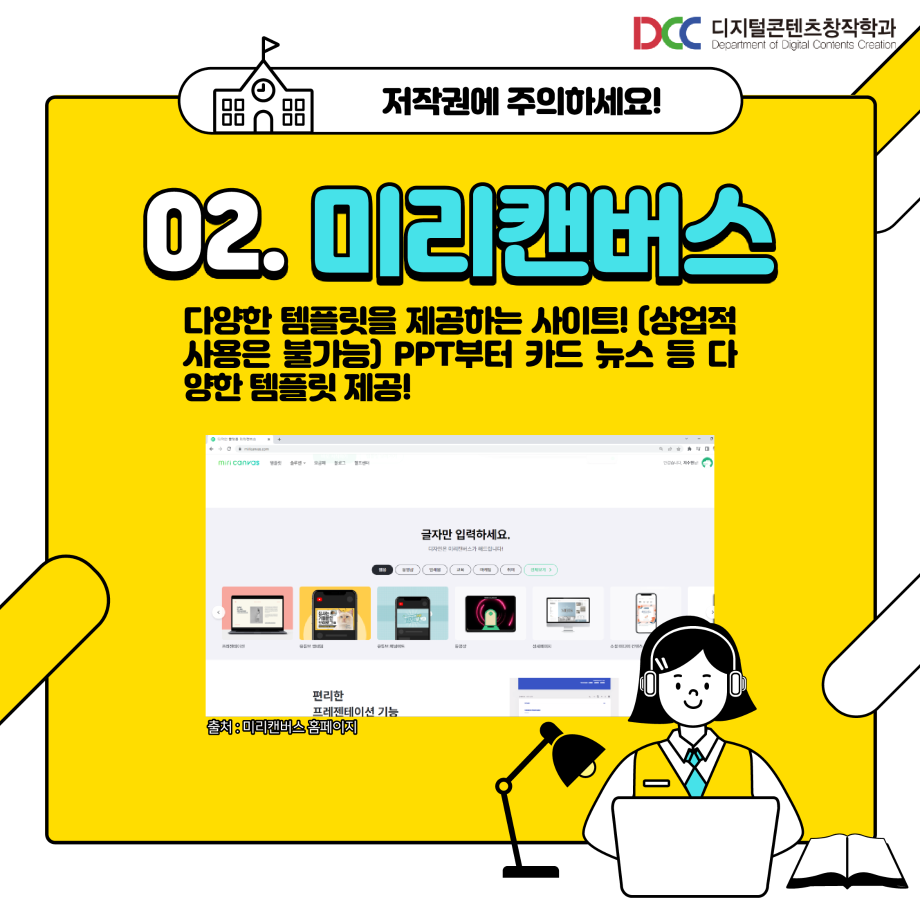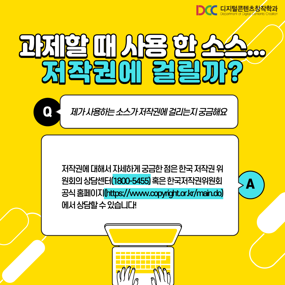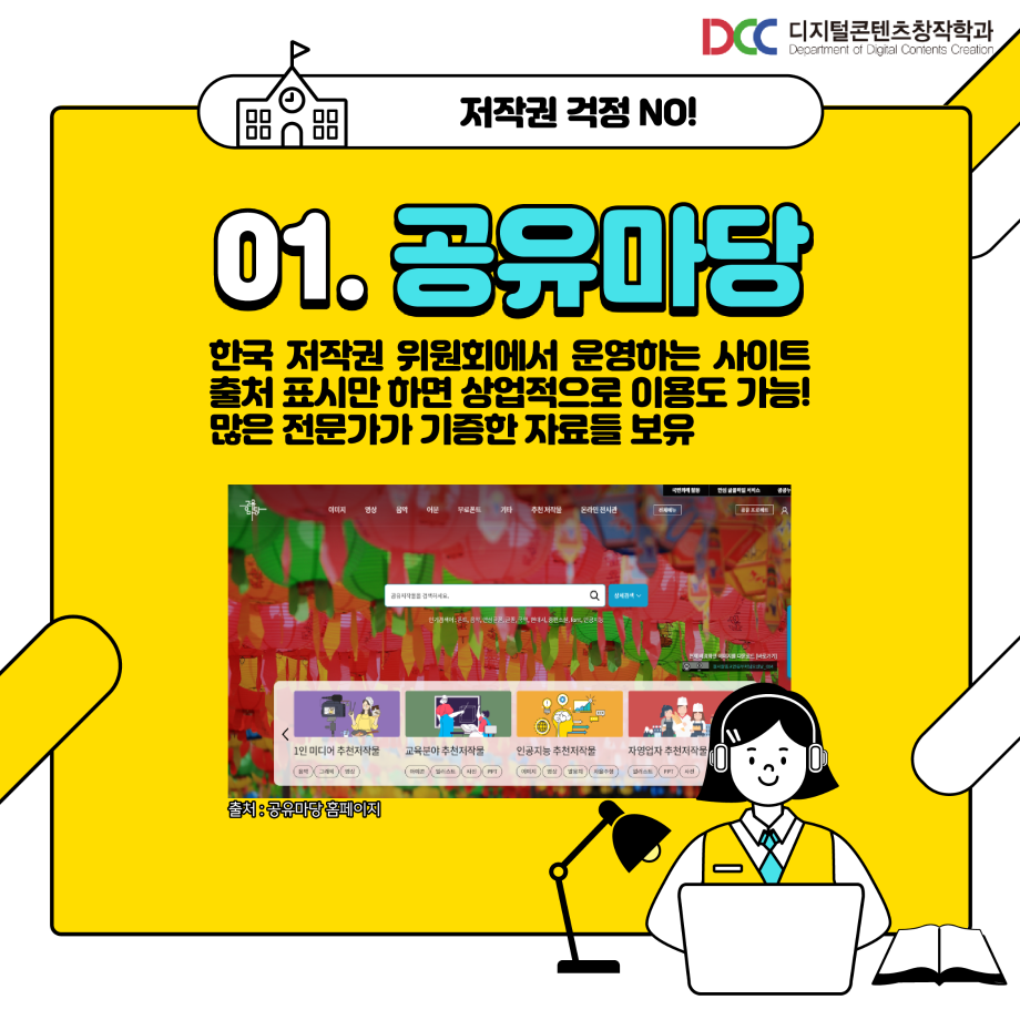 본문 시작 홈으로 MCC News 학과소개 교수소개 학과과정 MCC News MCC SNS 홈페이지가이드 학과 및 재학생 학과 및 재학생 교수 및 졸업생 미디어 정보통 학과 및 재학생 페이스북 트위터 프린트 과제 할 때 쓰기 좋은 사이트 디지털콘텐츠창작학과 4745 2023-06-02 과제할 때 사용하기 좋은 사이트를 공유해드려요! 저작권 걱정 없는 사이트들을 정리해봤습니다! 학우 분들의 과제 만점을 위해! 저작권 걱정 없는 사이트를 확인해보세요 :) 목록 이전제11회 24시간 필름페스티벌 엔딩 영상 다음 🍭 오늘의 디콘 15탄 🍭 담당부서 : 미디어콘텐츠창작학과 담당자 : - 연락처 : 043-649-1741 최종수정일 : 2024-10-26 만족도조사 만족도 조사 이 페이지에서 제공하는 정보에 대하여 만족하시나요? 매우만족 만족 보통 불만족 매우불만족