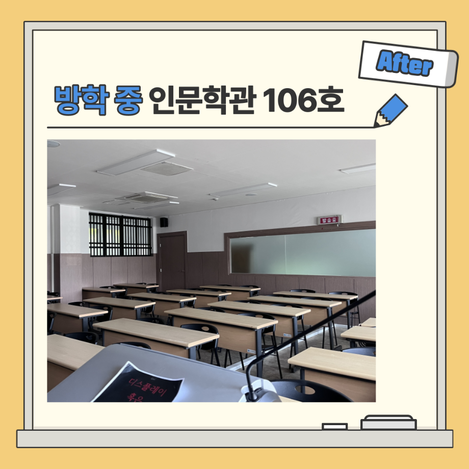 본문 시작 홈으로 MCC News 학과소개 교수소개 학과과정 MCC News MCC SNS 홈페이지가이드 학과 및 재학생 학과 및 재학생 교수 및 졸업생 미디어 정보통 학과 및 재학생 페이스북 트위터 프린트 🏫 강의실 Before & After 🏫 디지털콘텐츠창작학과 3351 2023-06-30 학기 중과 방학 중의 인문학관 강의실 모습입니다! 북적북적하던 강의실이 방학이 되자마자 텅 빈 모습을 볼 수 있는데요! 텅 빈 강의실을 보니 큰 허전함이 느껴지는 것 같아요😥 디콘창 학우분들! 하계 방학동안 즐겁고 보람찬 방학을 즐기시길 바랍니다 :) 목록 이전🍭 오늘의 디콘 16탄 🍭 다음 세명대학교 홈페이지 공지사항 정리 담당부서 : 미디어콘텐츠창작학과 담당자 : - 연락처 : 043-649-1741 최종수정일 : 2024-10-26 만족도조사 만족도 조사 이 페이지에서 제공하는 정보에 대하여 만족하시나요? 매우만족 만족 보통 불만족 매우불만족