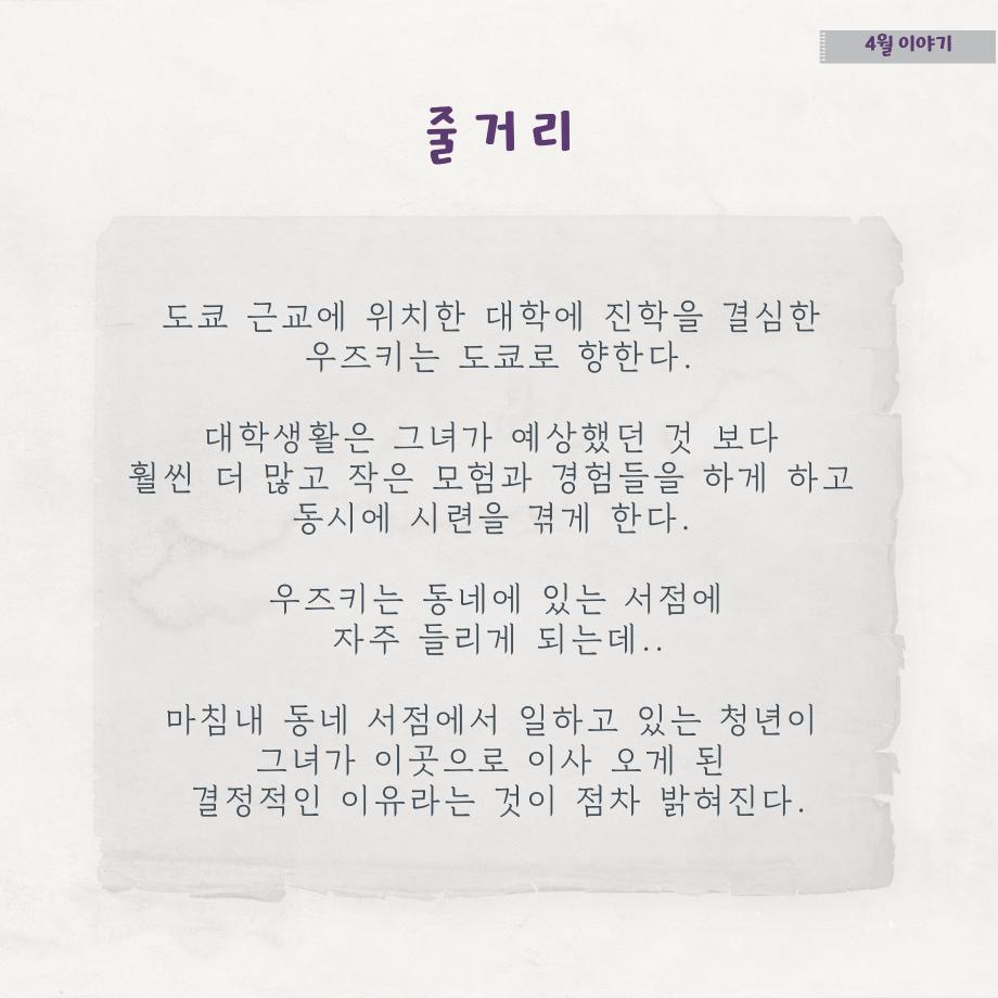 본문 시작 홈으로 MCC News 학과소개 교수소개 학과과정 MCC News MCC SNS 홈페이지가이드 학과 및 재학생 학과 및 재학생 교수 및 졸업생 미디어 정보통 학과 및 재학생 페이스북 트위터 프린트 디콘창이 추천하는 영화 추천 6선 4탄 디지털콘텐츠창작학과 4487 2023-07-14 세명대학교 디지털콘텐츠창작학과가 추천하는 영화 추천 6선 시리즈 네 번째입니다! 4탄의 추천 영화는 '4월 이야기'입니다. 영화 추천 시리즈에는 추천 영화의 줄거리, 스틸컷, 감상 가능한 사이트, 교수님의 한 줄 평까지 볼 수 있습니다. 짧지만 알찬 정보는 담았으니, 다양한 장르의 추천 영화를 감상해 보시고 여러분들의 한 줄 평을 남겨주세요! 앞으로 올라올 5탄도 학우분들의 많은 관심 부탁드립니다!❤ 목록 이전📚여름방학 자기계발 플랫폼📚 다음 🍭 오늘의 디콘 18탄 🍭 담당부서 : 미디어콘텐츠창작학과 담당자 : - 연락처 : 043-649-1741 최종수정일 : 2024-10-26 만족도조사 만족도 조사 이 페이지에서 제공하는 정보에 대하여 만족하시나요? 매우만족 만족 보통 불만족 매우불만족