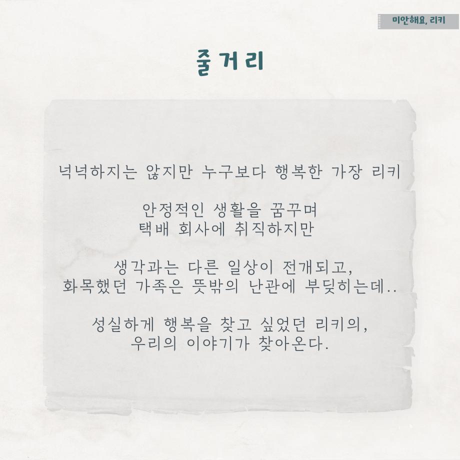 본문 시작 홈으로 MCC News 학과소개 교수소개 학과과정 MCC News MCC SNS 홈페이지가이드 학과 및 재학생 학과 및 재학생 교수 및 졸업생 미디어 정보통 학과 및 재학생 페이스북 트위터 프린트 디콘창이 추천하는 영화 추천 6선 5탄 디지털콘텐츠창작학과 4343 2023-07-21 세명대학교 디지털콘텐츠창작학과가 추천하는 영화 추천 6선 시리즈 다섯 번째입니다! 5탄의 추천 영화는 '미안해요 리키'입니다. 영화 추천 시리즈에는 추천 영화의 줄거리, 스틸컷, 감상 가능한 사이트, 교수님의 한 줄 평까지 볼 수 있습니다. 짧지만 알찬 정보는 담았으니, 다양한 장르의 추천 영화를 감상해 보시고 여러분들의 한 줄 평을 남겨주세요! 영화 추천 6선 시리즈의 마지막인 6탄도 학우분들의 많은 관심 부탁드립니다!❤ 목록 이전🍭 오늘의 디콘 18탄 🍭 다음 학생회가 알려주는 연계전공📚 담당부서 : 미디어콘텐츠창작학과 담당자 : - 연락처 : 043-649-1741 최종수정일 : 2024-10-26 만족도조사 만족도 조사 이 페이지에서 제공하는 정보에 대하여 만족하시나요? 매우만족 만족 보통 불만족 매우불만족