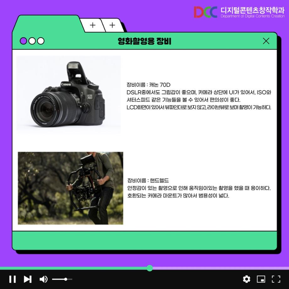 본문 시작 홈으로 MCC News 학과소개 교수소개 학과과정 MCC News MCC SNS 홈페이지가이드 학과 및 재학생 학과 및 재학생 교수 및 졸업생 미디어 정보통 학과 및 재학생 페이스북 트위터 프린트 📷디콘창 “촬영”장비 소개📷 디지털콘텐츠창작학과 4725 2023-08-24 촬영 장비로 어떤 것이 있는지 아직 잘 모르는 학생들을 위해 준비했습니다! 장비를 전부 소개할 수 없어 학생들이 자주 사용하는 촬영 장비들을 설명해드려요! 목록 이전📚디콘창 세부전공 소개📚 다음 디콘창이 추천하는 영화 추천 6선 6탄 담당부서 : 미디어콘텐츠창작학과 담당자 : - 연락처 : 043-649-1741 최종수정일 : 2024-10-26 만족도조사 만족도 조사 이 페이지에서 제공하는 정보에 대하여 만족하시나요? 매우만족 만족 보통 불만족 매우불만족