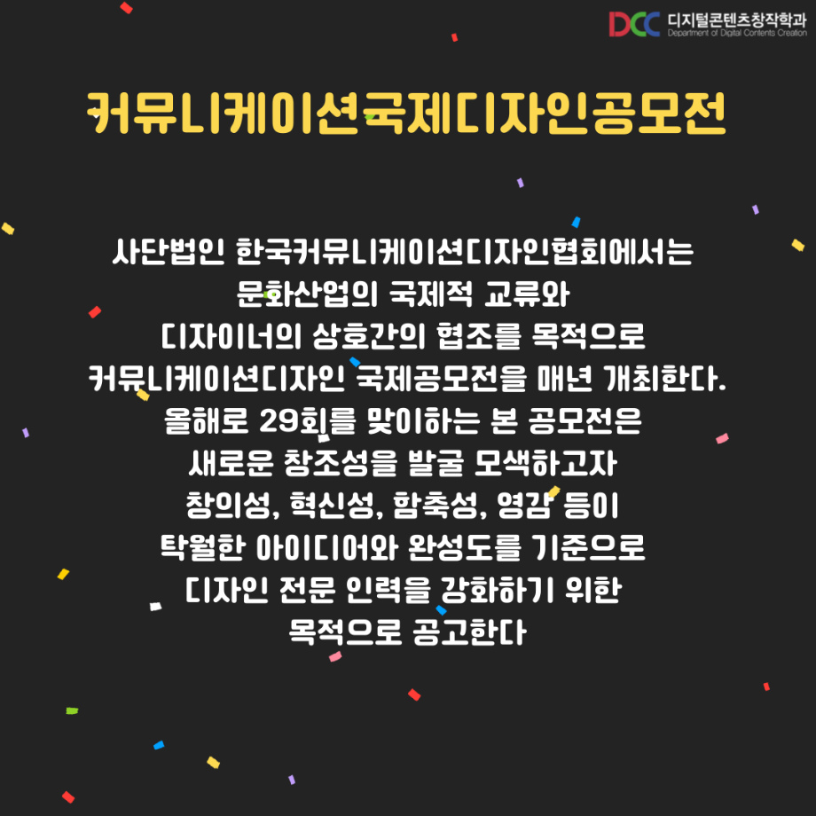 본문 시작 홈으로 MCC News 학과소개 교수소개 학과과정 MCC News MCC SNS 홈페이지가이드 학과 및 재학생 학과 및 재학생 교수 및 졸업생 미디어 정보통 학과 및 재학생 페이스북 트위터 프린트 디지털콘텐츠창작학과 재학생 커뮤니케이션 국제 디자인 공모전 수상 디지털콘텐츠창작학과 8279 2023-09-13 디지털콘텐츠창작학과 학우분들의 공모전 수상을 축하드립니다! 앞으로도 여러분들의 멋진 도전을 응원합니다! 목록 이전디지털콘텐츠창작학과, 장학금 마련을 위한 양심책방 운영 다음 디지털콘텐츠창작학과 재학생 국제 디자인트렌드 대전 수상 담당부서 : 미디어콘텐츠창작학과 담당자 : - 연락처 : 043-649-1741 최종수정일 : 2024-10-26 만족도조사 만족도 조사 이 페이지에서 제공하는 정보에 대하여 만족하시나요? 매우만족 만족 보통 불만족 매우불만족