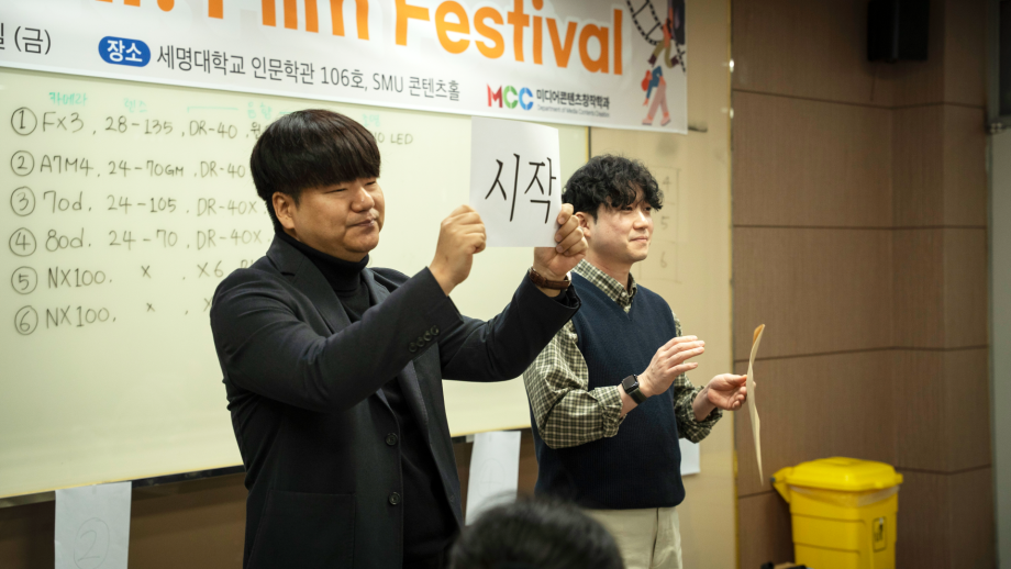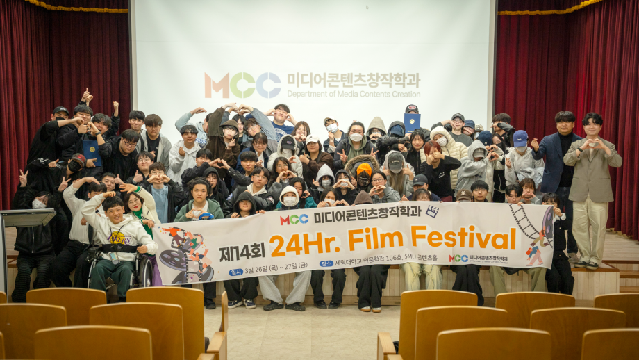 본문 시작 홈으로 MCC News 학과소개 교수소개 학과과정 MCC News MCC SNS 홈페이지가이드 학과 및 재학생 학과 및 재학생 교수 및 졸업생 미디어 정보통 학과 및 재학생 페이스북 트위터 프린트 제14회 24시간 필름 페스티벌 미디어콘텐츠창작학과 65 2026-04-01 미디어콘텐츠창작학과의 행사인 24시간 필름 페스티벌이 3월 26일부터 27일까지 24시간 동안 진행되었습니다. 학과 대표 행사인 24시간 필름 페스티벌은 24시간 동안 주어진 주제에 맞게 각본, 촬영, 편집을 통해 작품을 만드는 행사입니다. 올해는 총 6개의 팀으로 나누어져 ’시작‘을 주제로 영상을 제작했습니다. 학생 여러분 모두 24시간 동안 쉬지 않고 작품 제작 하시느라 고생 많으셨습니다! 목록 이전2026학년도 미디어콘텐츠창작학과 개강총회 담당부서 : 미디어콘텐츠창작학과 담당자 : - 연락처 : 043-649-1741 최종수정일 : 2024-10-26 만족도조사 만족도 조사 이 페이지에서 제공하는 정보에 대하여 만족하시나요? 매우만족 만족 보통 불만족 매우불만족