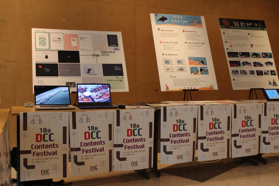 2018년 12월 3일에 진행된 제 18회 DCC콘텐츠페스티벌은 1학년부터 4학년까지의 전학년 학생들이 참여하여 한해동안 직접 제작한 영상 전체를 상영하고 우수작품을 시상하는 학과 영화제이다. 영상뿐만 아니라 학생들이 직접 출판한 학과잡지 '커뮤니케이션 통'과 다양한 디자인작품, e-Book과 서사·문예작품을 전시하여 한 해의 발자취를 돌아보는 축제이기도 하다.