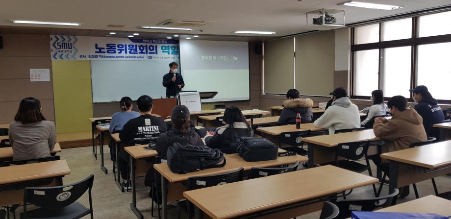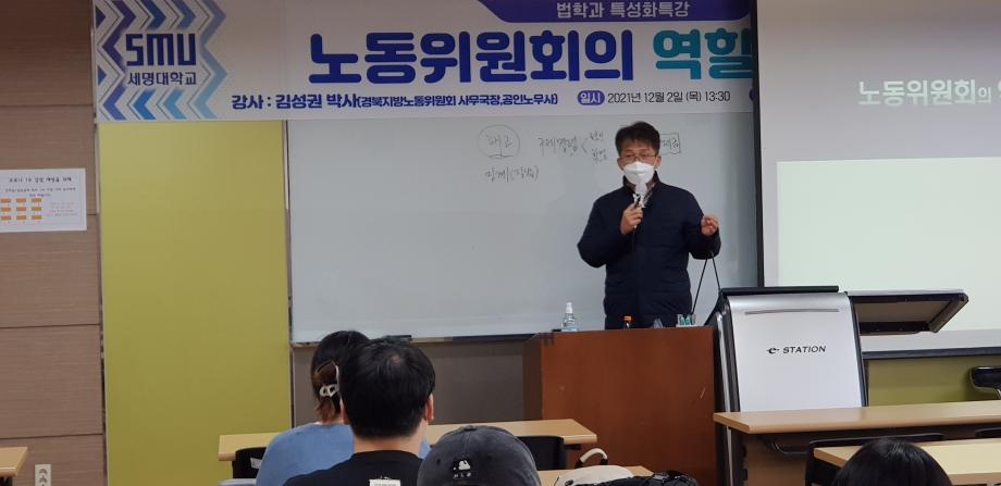본문 시작 홈으로 커뮤니티 학과안내 교수소개 학과과정 커뮤니티 홈페이지가이드 학과사진첩 공지사항 취업정보 학과사진첩 학과행사 동아리 학생회 교우소식 학과사진첩 페이스북 트위터 프린트 2021 12. 2. 김성권 노무사님 특강 법학과 4074 2021-12-02 2021년 12월 2일 경북지방노동위원회 사무국장을 맡고 계시는 김성권 노무사님을 모시고 ' 노동위원회의 역할과 기능' 이라는 주제로 특강을 진행하였습니다. ※본 특강은 코로나19 방역 수칙을 준수하여 진행하였습니다.※ 목록 이전2021. 12. 01 로엔젤 결산 및 간담회 다음 2021 12. 3. 신변보호사 자격증(2차) 담당부서 : 법학과 담당자 : - 연락처 : 043-649-1764 최종수정일 : 2024-10-26 만족도조사 만족도 조사 이 페이지에서 제공하는 정보에 대하여 만족하시나요? 매우만족 만족 보통 불만족 매우불만족