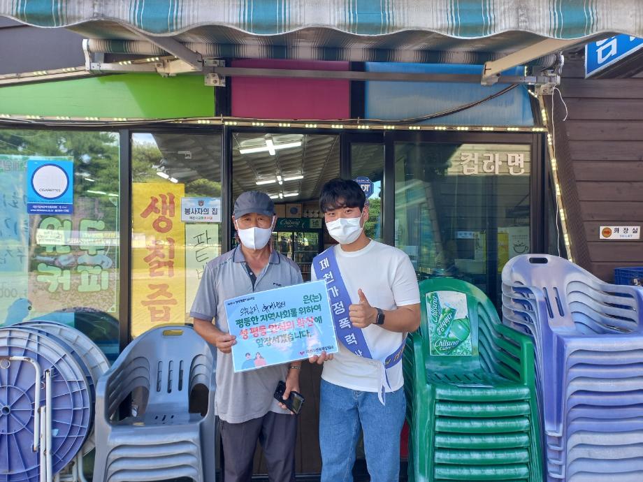 본문 시작 홈으로 커뮤니티 학과안내 교수소개 학과과정 커뮤니티 홈페이지가이드 학과사진첩 공지사항 취업정보 학과사진첩 학과행사 동아리 학생회 교우소식 학과사진첩 페이스북 트위터 프린트 2022-09-01, 07, 23 <팔레트> 봉사활동 법학과 3511 2022-10-07 2022-09-01, 07, 23 <팔레트> 봉사활동 2022.09.01, 의림지 공원에서 가정폭력 예방을 위해 주변 상가들에 협조를 받아 함께 캠페인 진행 2022.09.07, 제천 중앙동 <차 없는 거리>에서 제천가정폭력지원센터 주최, 소원팔찌제작과 “내가 생각하는 행복한 가정”에 대한 내용을 적는 홍보행사를 진행 2022.09.23, 제천시 종합운동장에서 소망팔찌 제작, 가정폭력 관련 퀴즈, 인식개선 설명회 등을 진행하는 부스를 운영 목록 이전2022-09-30 청주 일신여자고등학교, 고교로 찾아가는 학과전공특강 프로그램 시행 다음 2022-10-18 단양중학교, 학과참여형 전공특강 프로그램 시행 담당부서 : 법학과 담당자 : - 연락처 : 043-649-1764 최종수정일 : 2024-10-26 만족도조사 만족도 조사 이 페이지에서 제공하는 정보에 대하여 만족하시나요? 매우만족 만족 보통 불만족 매우불만족