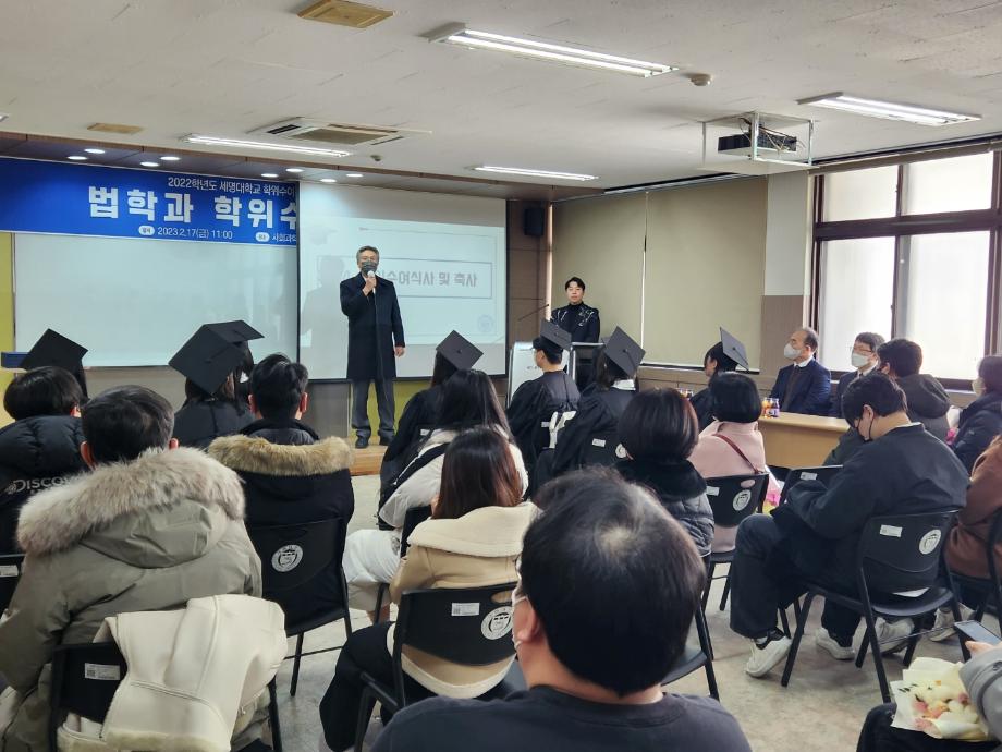 본문 시작 홈으로 커뮤니티 학과안내 교수소개 학과과정 커뮤니티 홈페이지가이드 학과사진첩 공지사항 취업정보 학과사진첩 학과행사 동아리 학생회 교우소식 학과사진첩 페이스북 트위터 프린트 2023-02-17 제29회 법학과 학위수여식 법학과 4177 2023-02-17 2023-02-17 제29회 법학과 학위수여식 목록 이전2022-12-23 단양고등학교 전공체험 부스 운영 다음 2023-02-20~2023-02-22 꿈설계학기 담당부서 : 법학과 담당자 : - 연락처 : 043-649-1764 최종수정일 : 2024-10-26 만족도조사 만족도 조사 이 페이지에서 제공하는 정보에 대하여 만족하시나요? 매우만족 만족 보통 불만족 매우불만족