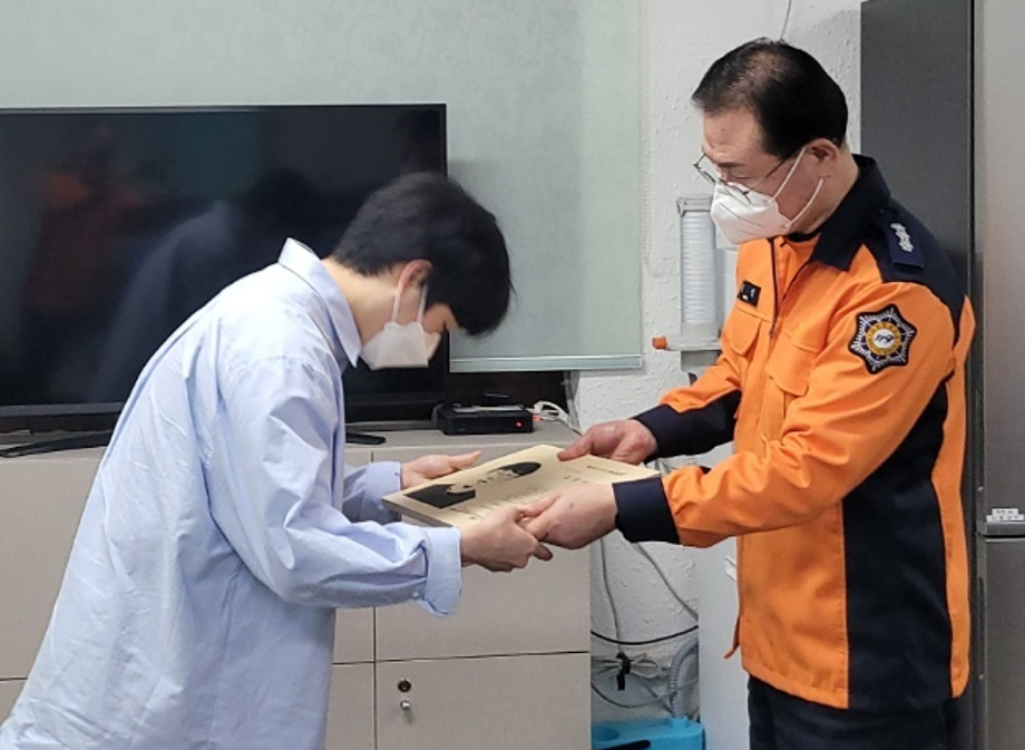 시상식은 코로나 19로 인해 순연되다가 4월에 제천 소방서에서 진행되었습니다.