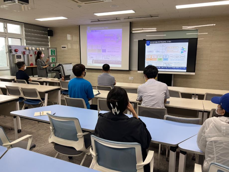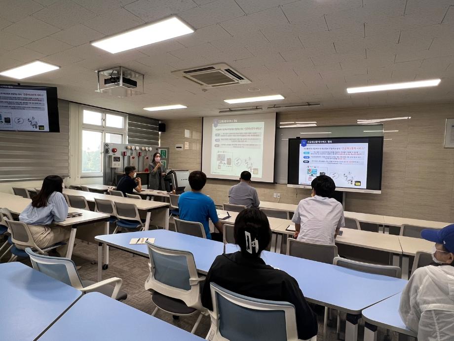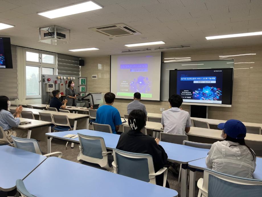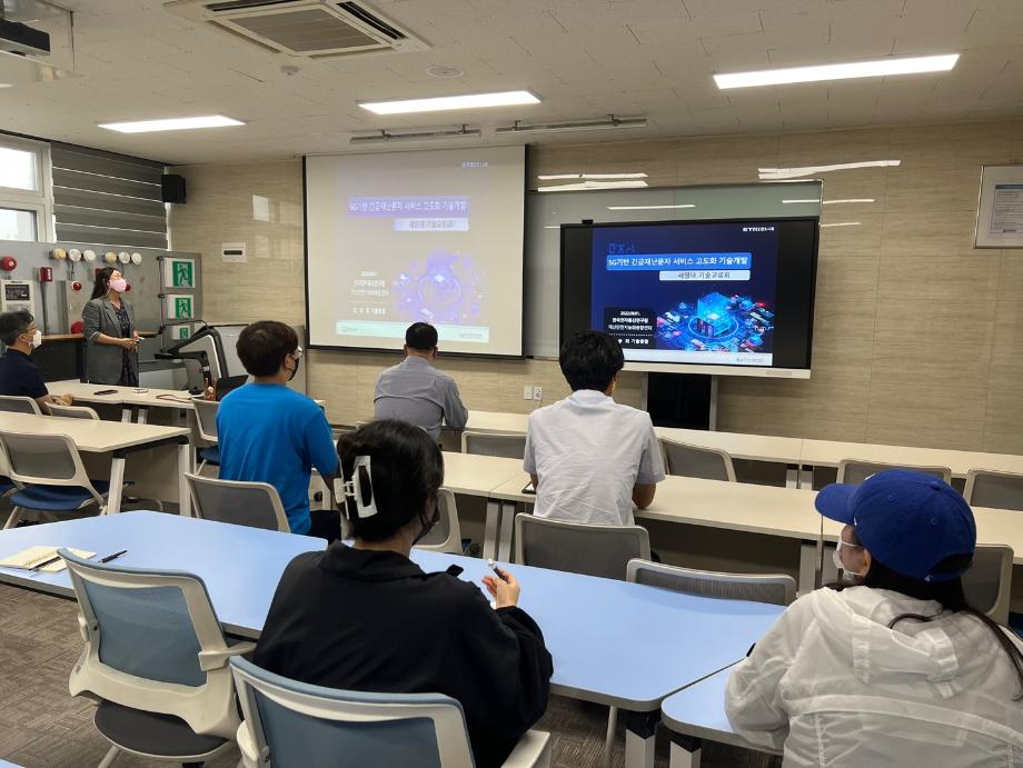 기술교류회에서는 한국전자통신 연구원 지능화 융합연구소의 국방 안전 ICT 연구단의 재난안전지능화 융합센터의 5G기반 긴급재난문자 서비스의 고도화 및 표준 정립 등에 관한 고도화 기술 개발에 관한 특강이 진행되었습니다.