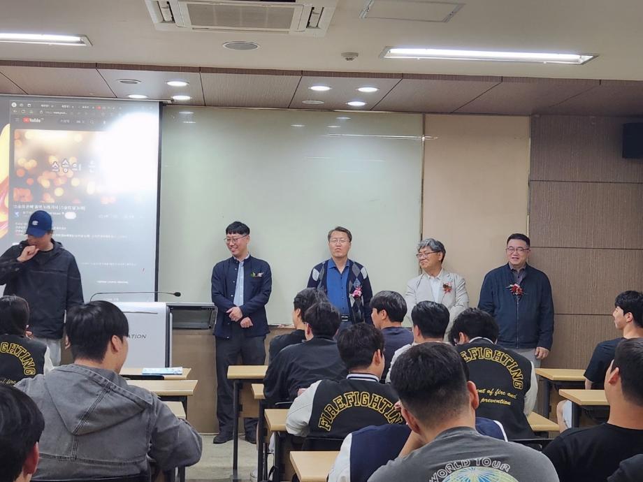 본문 시작 홈으로 커뮤니티 학과소개 교수소개 전공과정 커뮤니티 홈페이지가이드 학과행사 학과공지 채용정보 학사일정 학과행사 동아리 소방방재학과의 자랑 궁금합니다 수험생 Q&A 학과행사 페이스북 트위터 프린트 2024학년도 스승의 날 행사 소방방재학과 4668 2024-05-14 2024학년도 스승의 날 행사 소방방재학과 교수님들과 학생회 임원들, 학과 학생들이 조촐한 스승의 날 기념 행사를 진행했습니다. 감사의 마음 가운데 소방방재학과 학생회 임원들이 교수님들께 감사의 카네이션 꽃을 전달하는 뜻 깊은 시간을 가졌습니다. 목록 이전2023학년도 제30회 소방방재학과 학위수여식 다음 2024년 한국화재소빙학회 춘계학술대회 담당부서 : 소방방재학과 담당자 : - 연락처 : 043-649-1787 최종수정일 : 2024-10-26 만족도조사 만족도 조사 이 페이지에서 제공하는 정보에 대하여 만족하시나요? 매우만족 만족 보통 불만족 매우불만족
