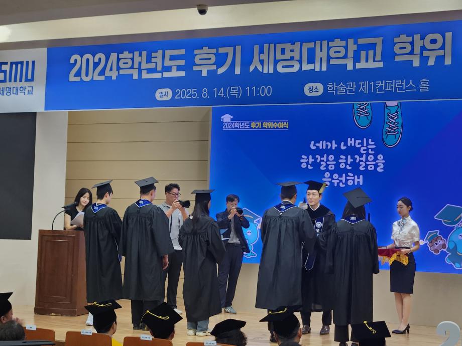 본문 시작 홈으로 커뮤니티 학과소개 교수소개 전공과정 커뮤니티 홈페이지가이드 학과행사 학과공지 채용정보 학사일정 학과행사 동아리 소방방재학과의 자랑 궁금합니다 수험생 Q&A 학과행사 페이스북 트위터 프린트 🎉2024학년도 후기 학위수여식✨🎉 소방방재학과 1972 2025-08-14 2024학년도 후기 세명대학교 소방방재학과 학위수여식 2025년 8월 14일 세명대학교 학술관 제1컨퍼런스홀에서 학위수여식이 진행되었습니다. 소방방재학과는 남*진, 윤*지, 이*원 학생을 비롯한 12명의 학생들이 이번 학위 수여식에서 학위를 받았습니다. 졸업을 진심으로 축하드리며, 졸업생 여러분의 앞날에 행복이 가득하길 기원합니다.✨ 목록 이전KCL 기후환경실증센터 견학 다음 KICT 화재안전연구소 견학 담당부서 : 소방방재학과 담당자 : - 연락처 : 043-649-1787 최종수정일 : 2024-10-26 만족도조사 만족도 조사 이 페이지에서 제공하는 정보에 대하여 만족하시나요? 매우만족 만족 보통 불만족 매우불만족