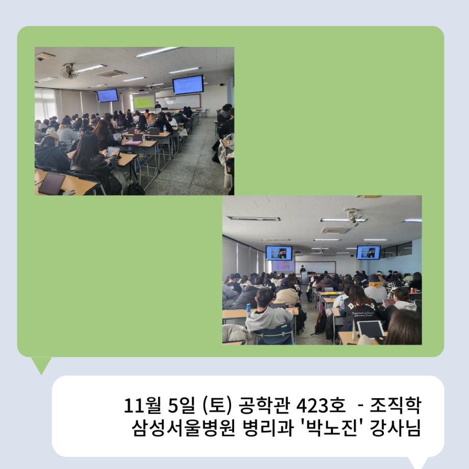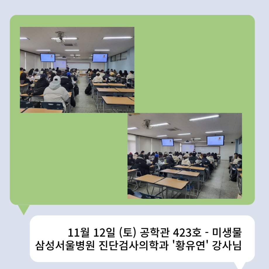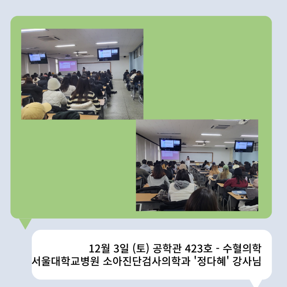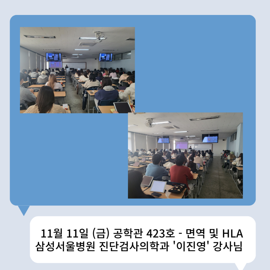 본문 시작 👨🔬2022년 3학년 실습특강👨🔬 임상병리학과 7036 2023-01-16 2022년 3학년 병원 실습 특강을 대신하여 각 분야의 강사님들을 초빙하여 강의를 진행해 주셨습니다. 병원실습을 못 간 대신 병원과 취업에 대해 궁금한 것에 대해 질문도 하는 유익한 시간이었습니다~ ✨ 강의를 진행해 주신 강사님들 감사합니다 🙂 ✨ 목록 이전🤖 3학년 세균학및실험 수업 실습영상 🤖 - 3주차 다음 2022 임상병리학과 MT 담당부서 : 임상병리학과 담당자 : - 연락처 : 043-649-1537 최종수정일 : 2024-10-26 만족도조사 만족도 조사 이 페이지에서 제공하는 정보에 대하여 만족하시나요? 매우만족 만족 보통 불만족 매우불만족