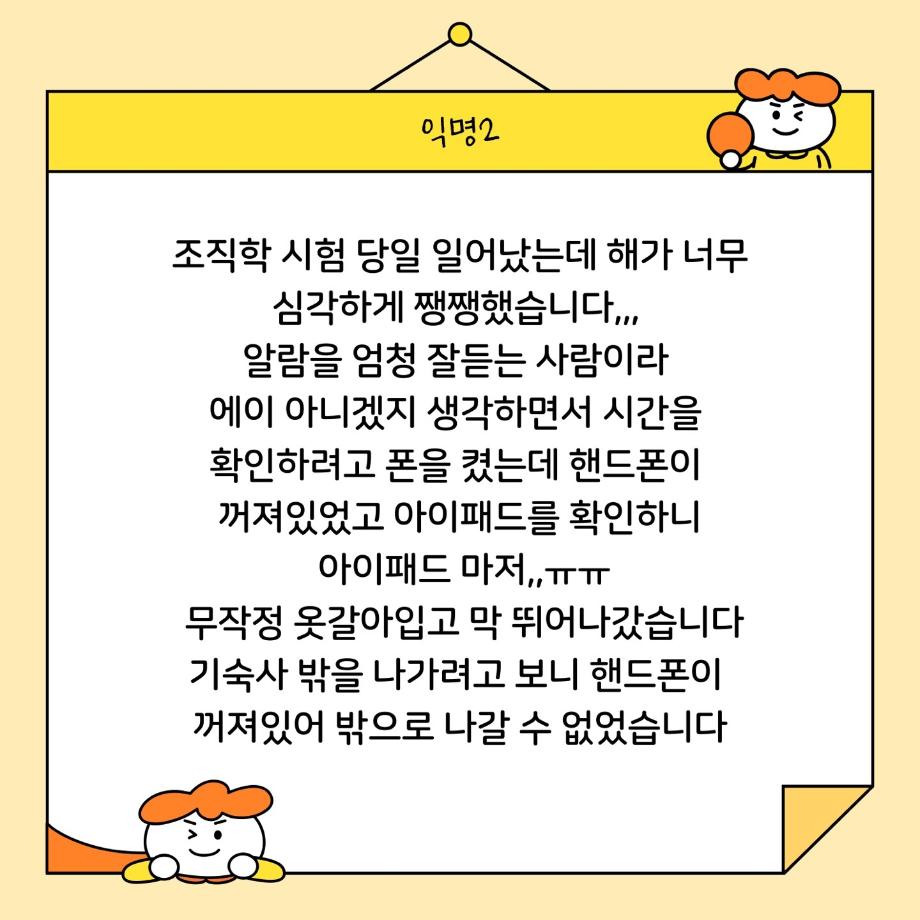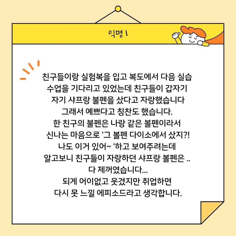 본문 시작 학교 에피소드 이벤트 임상병리학과 1975 2024-05-27 안녕하세요 16기 학생회입니다☺️ 개교기념일 기념 이벤트 주제인 ‘학교에서 있었던 재미있는 에피소드’ 3분을 선정하였습니다! 익명 1,2,3분께는 배달의민족 상품권을 증정해 드릴 예정입니다. 다음 이벤트도 많이 기대해 주세요:) 목록 이전과대 회식 다음 충북도페스티벌 in 증평 회식 담당부서 : 임상병리학과 담당자 : - 연락처 : 043-649-1537 최종수정일 : 2024-10-26 만족도조사 만족도 조사 이 페이지에서 제공하는 정보에 대하여 만족하시나요? 매우만족 만족 보통 불만족 매우불만족