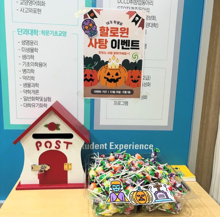 본문 시작 할로윈 사탕 이벤트 임상병리학과 3266 2024-11-02 안녕하세요! 16기 학생회입니다 ! 10월 31일 핼러윈 기념 깜짝 사탕 이벤트를 진행하였습니다! 조그만한 이벤트를 통해 학우분들께 즐거움을 드린 거 같아 매우 기쁩니다! 다음 이벤트도 많이 기대해 주세요! 목록 이전중간고사 학용품 이벤트 다음 헌혈 버스 오는 날 담당부서 : 임상병리학과 담당자 : - 연락처 : 043-649-1537 최종수정일 : 2024-10-26 만족도조사 만족도 조사 이 페이지에서 제공하는 정보에 대하여 만족하시나요? 매우만족 만족 보통 불만족 매우불만족