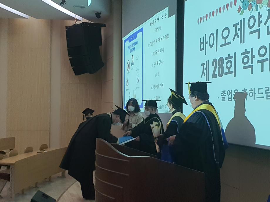 본문 시작 홈으로 학부자료실 학부소개 교육과정 학부공지게시판 학부자료실 홈페이지가이드 학부행사 및 사진게시판 학부행사 및 사진게시판 학생회 소개 학부행사 및 사진게시판 페이스북 트위터 프린트 2021학년도 전기 제 28회 학위수여식 바이오제약산업학부 3465 2022-02-21 2022년 2월 18일 오후 2시 학술관 제2컨퍼런스홀에서 28회 학위수여식을 진행하였습니다. 졸업생은 41명이며, 참석은 17명해주었습니다. 목록 이전비교과프로그램 Vlog : 제약시그널 다음 < 바이오제약산업학부 교수님 소개> 담당부서 : 바이오제약산업학부 담당자 : - 연락처 : 043-649-1729 최종수정일 : 2024-10-26 만족도조사 만족도 조사 이 페이지에서 제공하는 정보에 대하여 만족하시나요? 매우만족 만족 보통 불만족 매우불만족