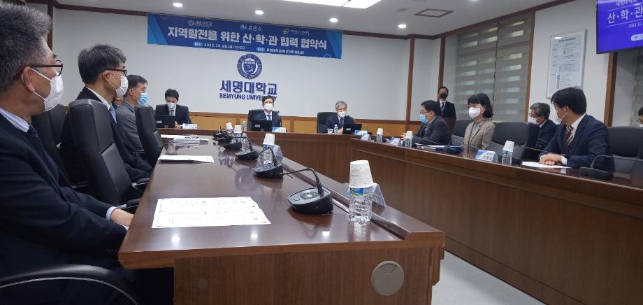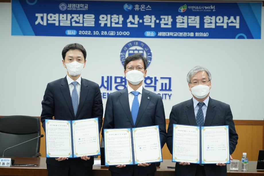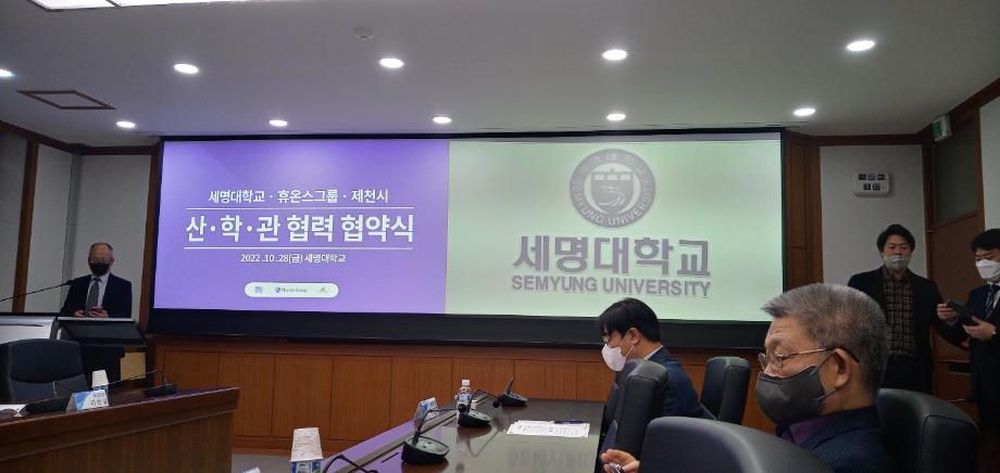본문 시작 홈으로 학부자료실 학부소개 교육과정 학부공지게시판 학부자료실 홈페이지가이드 학부행사 및 사진게시판 학부행사 및 사진게시판 학생회 소개 학부행사 및 사진게시판 페이스북 트위터 프린트 세명대학교:휴온스 상생협력을 위한 산학관협약 체결 바이오제약산업학부 3548 2022-11-04 세명대학교(총장 권동현)와 휴온스그룹(회상 윤성태), 제천시는 28일 세명대학교 본관 대회의실에서 상생협력을 위한 산학관 협약을 체결했다. 이 자리에 직접 관련 전공인 바이오제약산업학부, 화장품뷰티학부 교수들도 함께하였다. 목록 이전한국식품영양과학회에서 포스터 발표 다음 오송첨단의료산업진흥재단 등 견학 담당부서 : 바이오제약산업학부 담당자 : - 연락처 : 043-649-1729 최종수정일 : 2024-10-26 만족도조사 만족도 조사 이 페이지에서 제공하는 정보에 대하여 만족하시나요? 매우만족 만족 보통 불만족 매우불만족