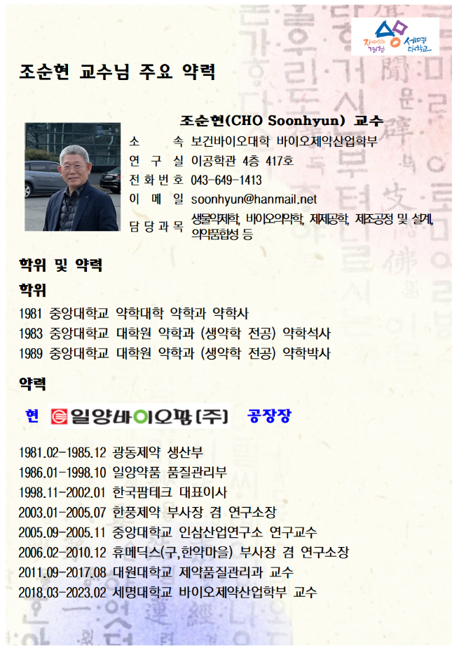 본문 시작 홈으로 학부자료실 학부소개 교육과정 학부공지게시판 학부자료실 홈페이지가이드 학부행사 및 사진게시판 학부행사 및 사진게시판 학생회 소개 학부행사 및 사진게시판 페이스북 트위터 프린트 조순현 교수님 정년기념 특별세미나 안내 바이오제약산업학부 3884 2023-02-16 조순현 교수님 정년기념 특별세미나 안내 목록 이전학위수여식 안내 다음 국가장학금 신청안내 담당부서 : 바이오제약산업학부 담당자 : - 연락처 : 043-649-1729 최종수정일 : 2024-10-26 만족도조사 만족도 조사 이 페이지에서 제공하는 정보에 대하여 만족하시나요? 매우만족 만족 보통 불만족 매우불만족