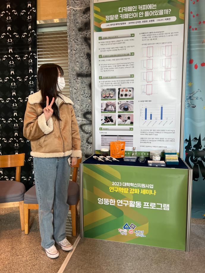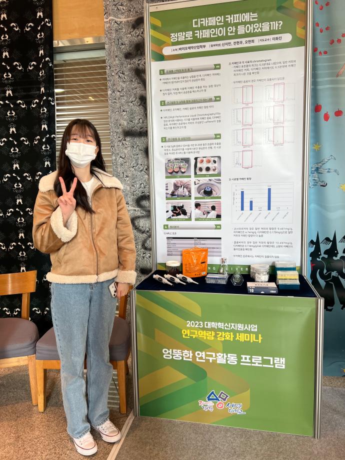 본문 시작 홈으로 학부자료실 학부소개 교육과정 학부공지게시판 학부자료실 홈페이지가이드 학부행사 및 사진게시판 학부행사 및 사진게시판 학생회 소개 학부행사 및 사진게시판 페이스북 트위터 프린트 2023 엉뚱한 연구 결과 발표회 바이오제약산업학부 3380 2023-11-28 우리 학부 신지민, 전현우, 오현희 학생이 이화진 교수의 지도를 받아 진행한 '디카페인 커피에는 정말로 카페인이 안 들어 있을까? '결과를 2023년 11월 28일 세명대학교 학술관에서 발표하였다. 목록 이전의약품 인허가(RA) 전문가 양성과정 다음 의약품 인허가(RA) 전문가 양성과정 1차 담당부서 : 바이오제약산업학부 담당자 : - 연락처 : 043-649-1729 최종수정일 : 2024-10-26 만족도조사 만족도 조사 이 페이지에서 제공하는 정보에 대하여 만족하시나요? 매우만족 만족 보통 불만족 매우불만족