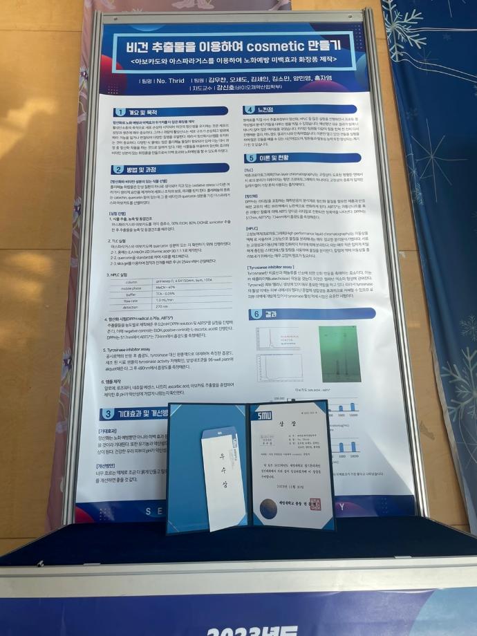 본문 시작 홈으로 학부자료실 학부소개 교육과정 학부공지게시판 학부자료실 홈페이지가이드 학부행사 및 사진게시판 학부행사 및 사진게시판 학생회 소개 학부행사 및 사진게시판 페이스북 트위터 프린트 2023학년도 세명대학교 캡스톤디자인 경진대회 우수상 수상 바이오제약산업학부 3416 2023-11-30 2023학년도 세명대학교 캡스톤디자인 경진대회 우수상 수상 우리학부 김우찬, 오세도, 김세인, 김소민, 양민영, 홍자영 학생이 제출한 비건 추출물을 이용하여 Cosmetic 만들기 <아보카도와 아스파라거스를 이용하여 노화예방 미백효과 화장품제작> 우수상을 수상하였습니다. 축하합니다. 목록 이전축하합니다.))) 오*도 학생 휴메딕스에 취업하였습니다. 다음 휴메딕스 원상호 부장 특강_현직자가 알려주는 제약품질 관리 담당부서 : 바이오제약산업학부 담당자 : - 연락처 : 043-649-1729 최종수정일 : 2024-10-26 만족도조사 만족도 조사 이 페이지에서 제공하는 정보에 대하여 만족하시나요? 매우만족 만족 보통 불만족 매우불만족