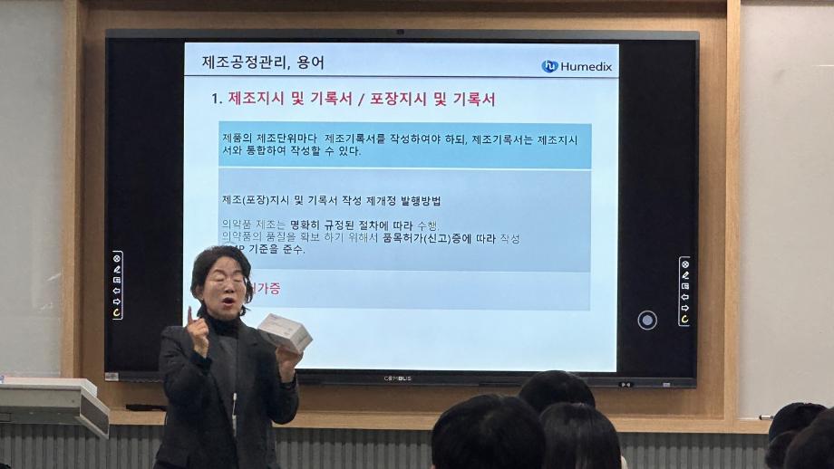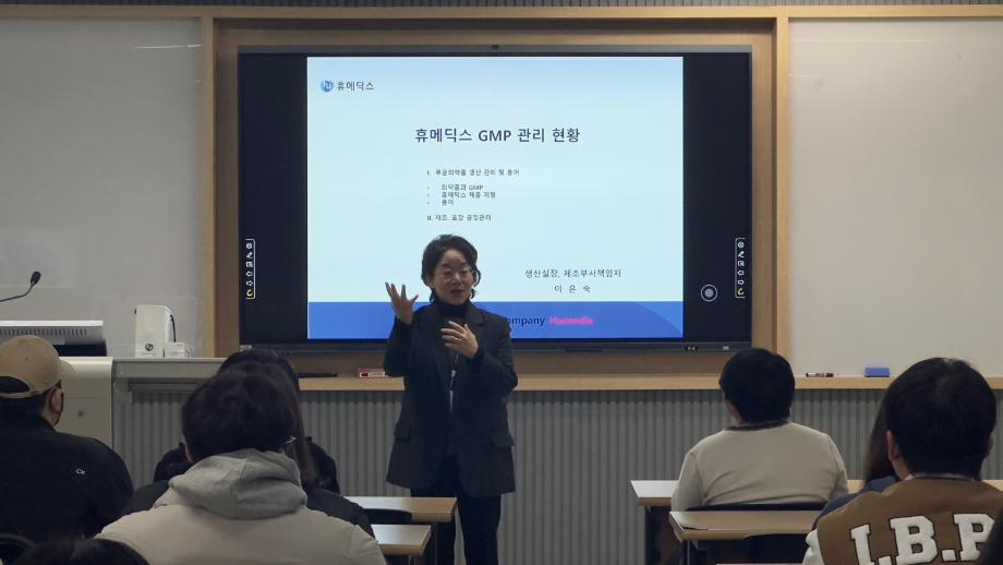 본문 시작 홈으로 학부자료실 학부소개 교육과정 학부공지게시판 학부자료실 홈페이지가이드 학부행사 및 사진게시판 학부행사 및 사진게시판 학생회 소개 학부행사 및 사진게시판 페이스북 트위터 프린트 휴메딕스 이은숙 이사 특강_현직자가 알려주는 GMP&Validation 바이오제약산업학부 3364 2023-12-08 바이오제약산업학부에서는 휴메딕스 생산실장, 제조부서책임자 이은숙 이사님을 모시고 휴메딕스 GMP 관리 현황에 대한 특강을 진행하였다. GMP가 엄격히 관리되고 있는 기업의 현황을 사례로 제약산업에서 필수적인 GMP에 대한 의미있는 교육이 진행되었다. 목록 이전휴메딕스 원상호 부장 특강_현직자가 알려주는 제약품질 관리 다음 2023학년도 전기 학위 수여식 안내 담당부서 : 바이오제약산업학부 담당자 : - 연락처 : 043-649-1729 최종수정일 : 2024-10-26 만족도조사 만족도 조사 이 페이지에서 제공하는 정보에 대하여 만족하시나요? 매우만족 만족 보통 불만족 매우불만족