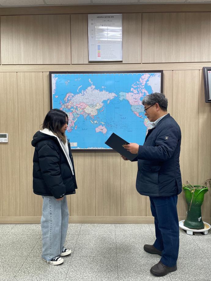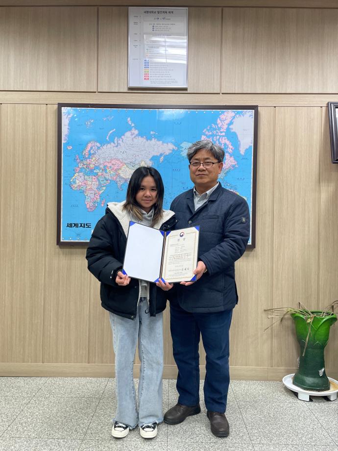 본문 시작 홈으로 학부자료실 학부소개 교육과정 학부공지게시판 학부자료실 홈페이지가이드 학부행사 및 사진게시판 학부행사 및 사진게시판 학생회 소개 학부행사 및 사진게시판 페이스북 트위터 프린트 우리학부 생 시티카(캄보디아) 국립국제교육원 원장상 수상 바이오제약산업학부 3145 2024-02-01 바이오제약산업학부 학부과정에 재학 중인 생 시티카(캄보디아)는 우수한 학업 성과를 인정받아 교육부 산하 국립국제교육원으로부터 원장상을 수상했다. 생시티카 학생은 정부초청장학생으로 2022년 세명대학교 바이오제약산업학부 입학 후 한국어능력시험(TOPIK) 6급 취득 및 우수한 학업 성적을 유지하고 있다. 국립국제교육원에서는 정부초청외국인장학사업(GKS)을 통해 초청한 외국인 장학생 중 유학 생활 성과가 우수한 학생을 매년 선정해 시상하고 있다. 목록 이전축하합니다. 권*현, 박*호 학생이 휴온스에 취업하였습니다. 다음 2024학년도 404호 강의실 리모델링 담당부서 : 바이오제약산업학부 담당자 : - 연락처 : 043-649-1729 최종수정일 : 2024-10-26 만족도조사 만족도 조사 이 페이지에서 제공하는 정보에 대하여 만족하시나요? 매우만족 만족 보통 불만족 매우불만족