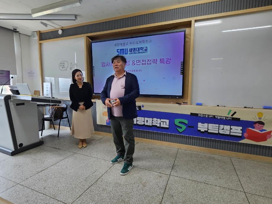 본문 시작 홈으로 학부자료실 학부소개 교육과정 학부공지게시판 학부자료실 홈페이지가이드 학부행사 및 사진게시판 학부행사 및 사진게시판 학생회 소개 학부행사 및 사진게시판 페이스북 트위터 프린트 바이오제약산업학부 2024 S-Boot Camp 시행 바이오제약산업학부 2475 2024-05-29 바이오제약산업학부에서는 5월 24-25일 S-Boot Camp를 시행하였다. 본행사는 취업을 희망하는 학생들에게 이력서, 자기소개서를 작성, 감수하여 인생 자소서를 확보하고 면접 대비 준비사항에 대하여 교육하여 우수 기업에 취업할 수 있도록 지도하는 대학지원 프로그램이다. 목록 이전바이오제약기초실험 (BUFFER 조제 실습) 다음 임병옥 교수님 고별 강연 성료 담당부서 : 바이오제약산업학부 담당자 : - 연락처 : 043-649-1729 최종수정일 : 2024-10-26 만족도조사 만족도 조사 이 페이지에서 제공하는 정보에 대하여 만족하시나요? 매우만족 만족 보통 불만족 매우불만족