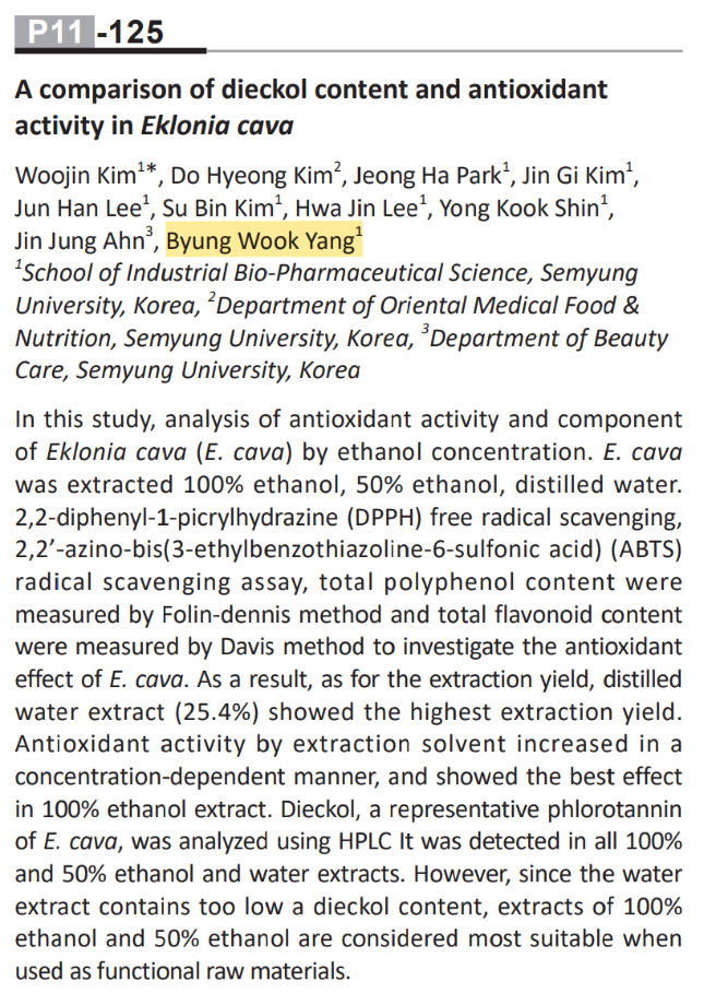 발표내용은 A comparison of dieckol content and antioxidant