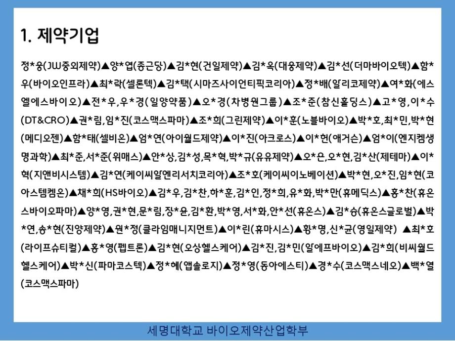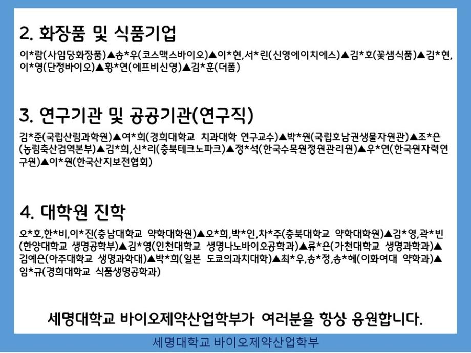 본문 시작 홈으로 학부자료실 학부소개 교육과정 학부공지게시판 학부자료실 홈페이지가이드 학부행사 및 사진게시판 학부행사 및 사진게시판 학생회 소개 학부행사 및 사진게시판 페이스북 트위터 프린트 바이오제약산업학부 취업자/진학자 현황 (2024년 9월) 바이오제약산업학부 2011 2024-09-06 바이오제약산업학부 취업자/진학자 현황 (2024년 9월) 목록 이전충북 대학생 일자리 박람회 참여 다음 "한의학과 정밀의료의 융합" 담당부서 : 바이오제약산업학부 담당자 : - 연락처 : 043-649-1729 최종수정일 : 2024-10-26 만족도조사 만족도 조사 이 페이지에서 제공하는 정보에 대하여 만족하시나요? 매우만족 만족 보통 불만족 매우불만족