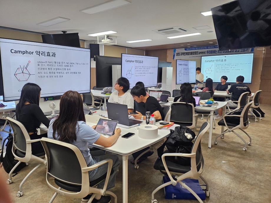 본문 시작 홈으로 학부자료실 학부소개 교육과정 학부공지게시판 학부자료실 홈페이지가이드 학부행사 및 사진게시판 학부행사 및 사진게시판 학생회 소개 학부행사 및 사진게시판 페이스북 트위터 프린트 바이오제약산업학부 여름방학 특별활동 바이오제약산업학부 2287 2025-07-24 2025년 여름방학 동안 바이오제약산업학부 학생들이 기능성 천연물 소재 개발 관련 특별활동을 하고 있습니다. 이번에는 관심있는 천연물의 구조와 생리활성 기능에 대해 팀별로 논문을 읽고 발표하는 시간을 가졌습니다. 목록 이전쳔연물조직배양 세포주은행 구축을 위한 현장실무형 2차 교육 다음 바이오제약산업학부 지역연계 창의 융합 캠프 담당부서 : 바이오제약산업학부 담당자 : - 연락처 : 043-649-1729 최종수정일 : 2024-10-26 만족도조사 만족도 조사 이 페이지에서 제공하는 정보에 대하여 만족하시나요? 매우만족 만족 보통 불만족 매우불만족