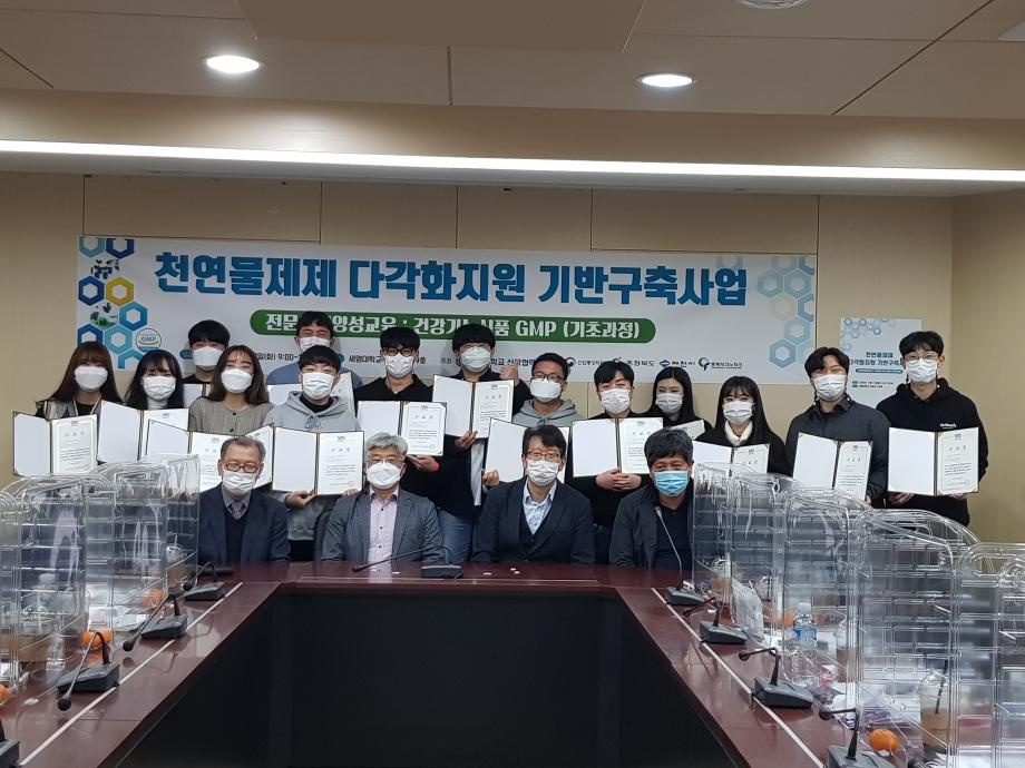 본문 시작 홈으로 학부자료실 학부소개 교육과정 학부공지게시판 학부자료실 홈페이지가이드 학부행사 및 사진게시판 학부행사 및 사진게시판 학생회 소개 학부행사 및 사진게시판 페이스북 트위터 프린트 천연물제제 다각화지원 기반 구축사업 바이오제약산업학부 7940 2020-11-17 천연물제제 다각화지원 기반 구축사업 <과정명 : 건강기능식품 GMP교육 기초과정> - 일시 : 2020년 11월 17일(화) 9:00~18:00 - 장소 : 세명대학교 학술관 109호 - 주최 : 세명대학교 산학협력단 - 내용 : 바이오제약산업학부 학생들은 11월 17일 산업통상자원부의 천연물제제 다각화지원 기반구축사업의 일환으로 세명대학교 산학협력단이 시행한 교육과정의 전 과정을 이수하여 수료증을 수여받았습니다. 축하합니다. 목록 이전2020 정기재물조사 모범상 수상 다음 바이오제약산업학부 임병옥교수, 공로상 표창 수상 담당부서 : 바이오제약산업학부 담당자 : - 연락처 : 043-649-1729 최종수정일 : 2024-10-26 만족도조사 만족도 조사 이 페이지에서 제공하는 정보에 대하여 만족하시나요? 매우만족 만족 보통 불만족 매우불만족