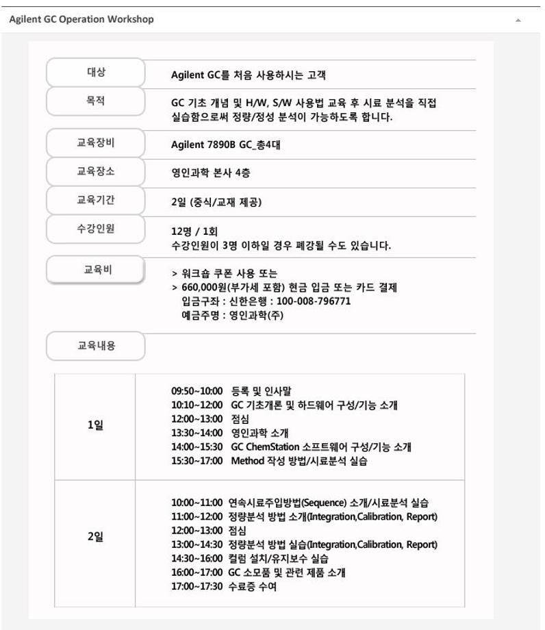 본문 시작 홈으로 커뮤니티 학과소개 교수소개 학과과정 커뮤니티 홈페이지가이드 학과활동 및 행사 학과공지 채용정보 학과활동 및 행사 전공자료실 동아리 학과활동 및 행사 페이스북 트위터 프린트 2018하계 위탁교육 바이오환경공학과 9541 2018-08-28 바이오환경공학과에서는 매년 학생들의 신청을 받아 영인과학주식회사로 고가장비위탁교육을 보내고 있습니다. 2018년 8월 6일 ~ 8월 7일 2일간 1차로 Agilent GC Operation Workshop를 실시하였습니다. 목록 이전2018 수질특강 다음 2019학년도 신입생환영회 담당부서 : 환경에너지학과 담당자 : - 연락처 : 043-649-1337 최종수정일 : 2024-10-26 만족도조사 만족도 조사 이 페이지에서 제공하는 정보에 대하여 만족하시나요? 매우만족 만족 보통 불만족 매우불만족