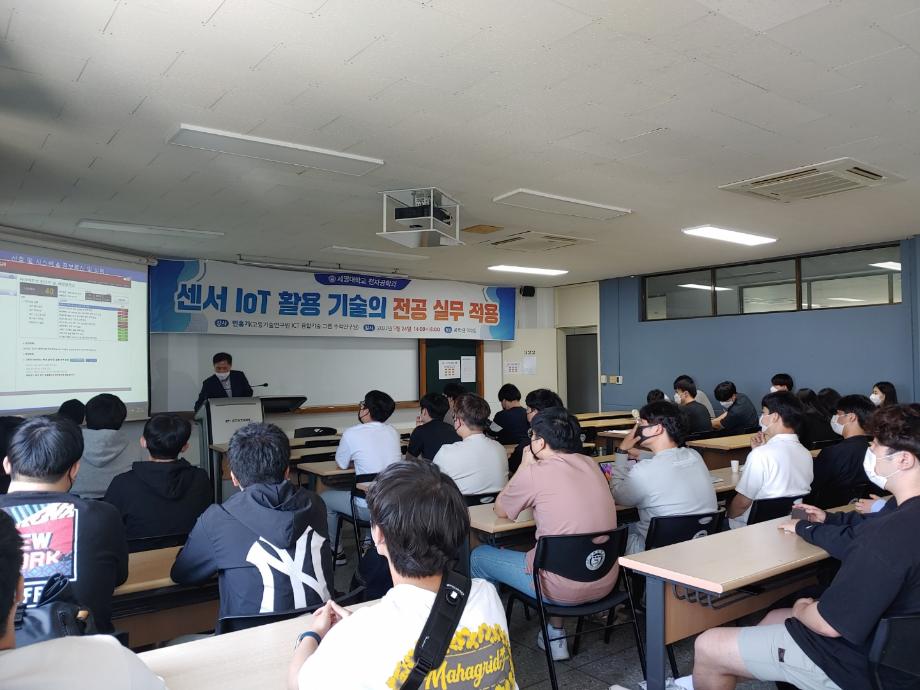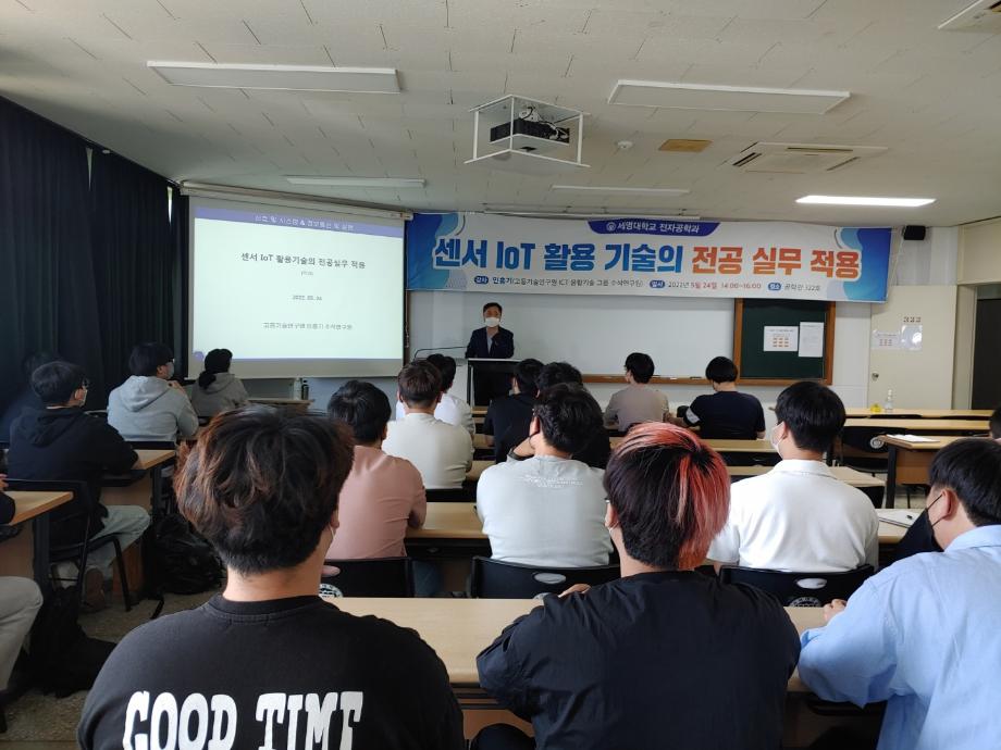 본문 시작 홈으로 커뮤니티 학과소개 교육과정 학과활동 커뮤니티 진로취업 입학상담 홈페이지가이드 포토갤러리 학과공지 포토갤러리 자유게시판 동영상 게시판 포토갤러리 페이스북 트위터 프린트 '센서 IoT를 활용 기술의 전공 실무 적용' 특강 전자공학과 2718 2022-05-24 전자공학과에서 '센서 IoT 활용 기술의 전공 실무 적용'에 대해서 특강을 진행하였습니다. 민흥기 강사님께서 직접 오셔서 여러가지 센서를 활용한 작품 관련 자료를 강의하였습니다. 특강을 통해 여러 작품의 자료를 배우면서 전자공학을 졸업 한 후 실무 활동 및 전공에 대한 이해도를 더욱 깊이 배울 수 있는시간이 되었습니다. 목록 이전M.X동아리 세미나 다음 고등학생 특강을 위한 멘토 준비 담당부서 : 전자공학과 담당자 : - 연락처 : 043-649-1683 최종수정일 : 2024-10-26 만족도조사 만족도 조사 이 페이지에서 제공하는 정보에 대하여 만족하시나요? 매우만족 만족 보통 불만족 매우불만족