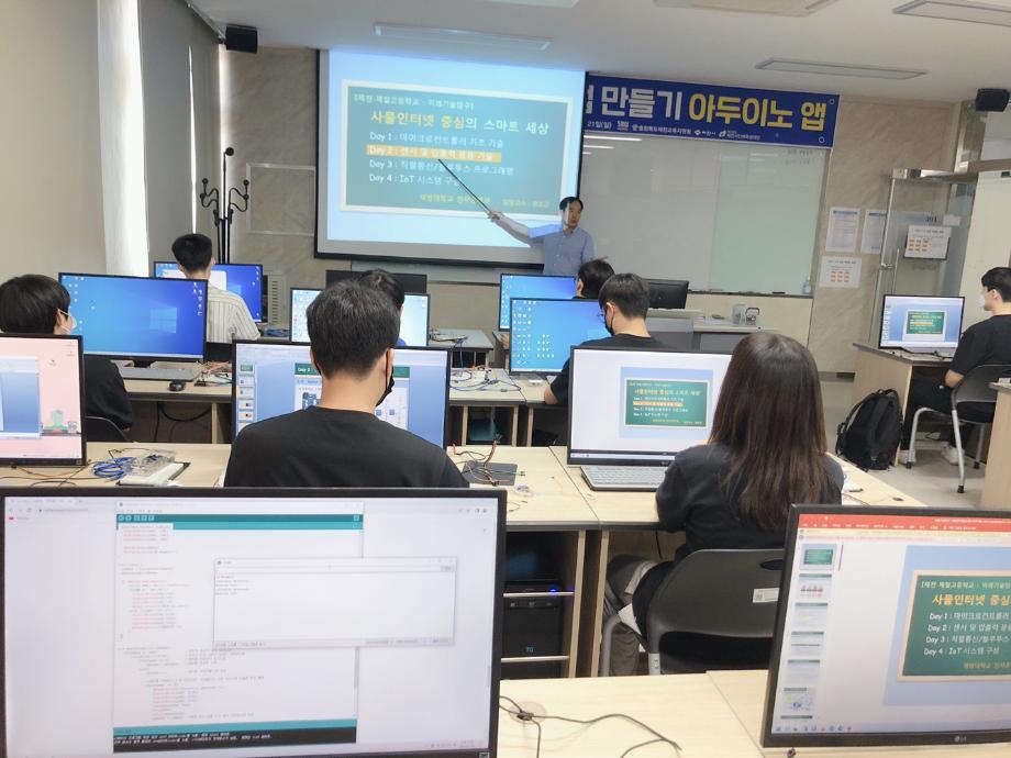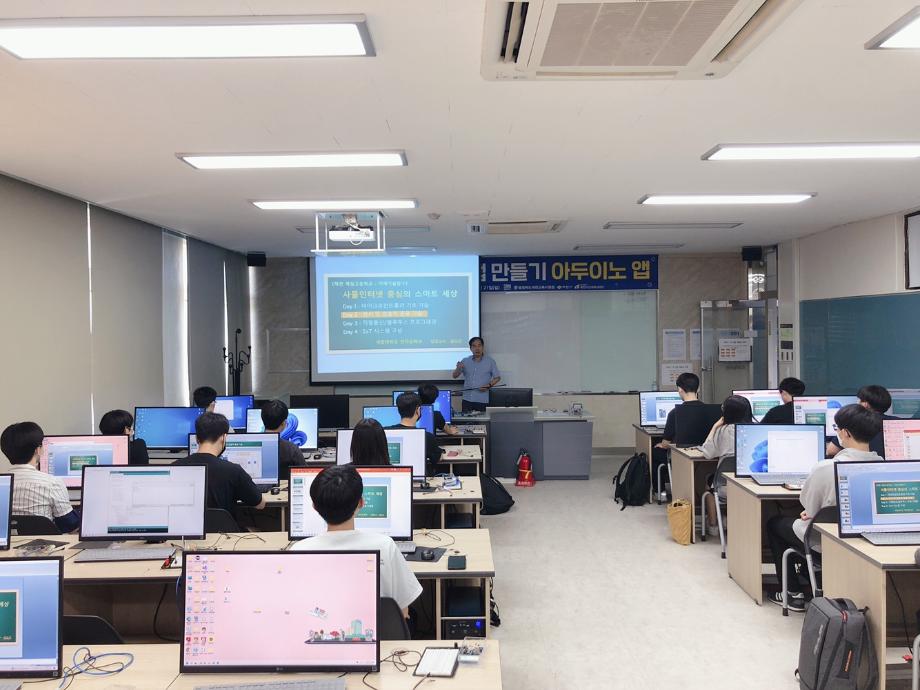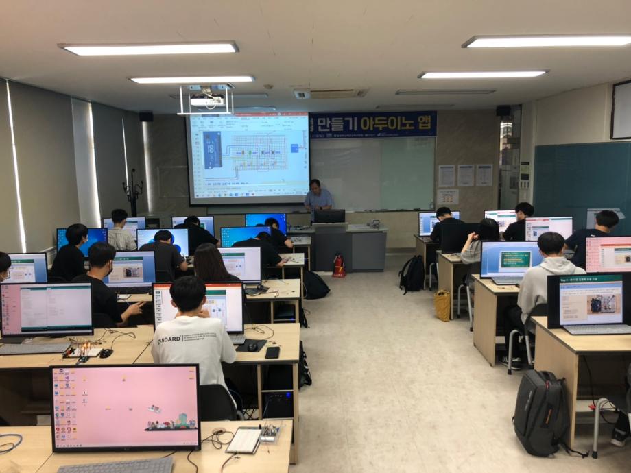 본문 시작 홈으로 커뮤니티 학과소개 교육과정 학과활동 커뮤니티 진로취업 입학상담 홈페이지가이드 포토갤러리 학과공지 포토갤러리 자유게시판 동영상 게시판 포토갤러리 페이스북 트위터 프린트 제천제일고등학교 특강 2일차 (나의 앱 만들기 아두이노 앱) 전자공학과 2897 2022-07-12 7/8일 제일고등학교 학생을 대상으로 ‘나의 앱 만들기 아두이노 앱’ 특강 2일차를 진행했습니다. 학생들은 2일차 특강에서 적외선 센서, 모터, 스피커 사용을 하여 시리얼 통신을 통해 제어하는 것을 배웠습니다. 목록 이전제천제일고등학교 특강 1일차 (나의 앱 만들기 아두이노 앱) 다음 제천제일고등학교 특강 3일차 (나의 앱 만들기 아두이노 앱) 담당부서 : 전자공학과 담당자 : - 연락처 : 043-649-1683 최종수정일 : 2024-10-26 만족도조사 만족도 조사 이 페이지에서 제공하는 정보에 대하여 만족하시나요? 매우만족 만족 보통 불만족 매우불만족