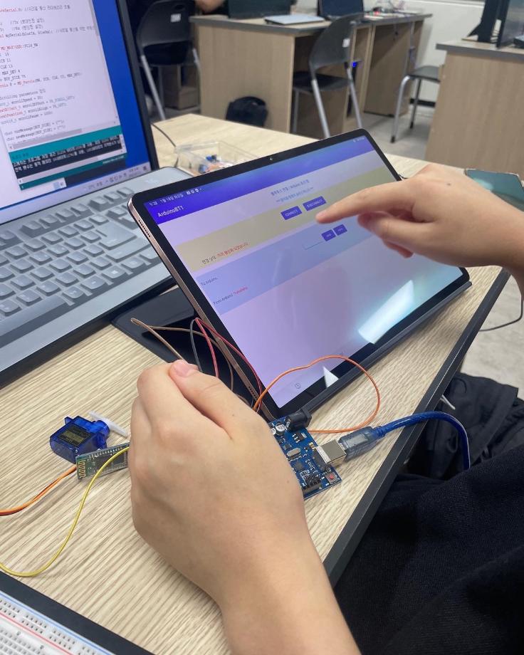 본문 시작 홈으로 커뮤니티 학과소개 교육과정 학과활동 커뮤니티 진로취업 입학상담 홈페이지가이드 포토갤러리 학과공지 포토갤러리 자유게시판 동영상 게시판 포토갤러리 페이스북 트위터 프린트 제천제일고등학교 특강 3일차 (나의 앱 만들기 아두이노 앱) 전자공학과 2938 2022-07-12 7/11일 제일고등학교 학생들을 대상으로 ‘나의 앱 만들기 아누이노 앱’ 특강 3일차를 진행했습니다. 3일차에는 각 센서를 어플을 이용하여 제어하였습니다. 각자 태블릿을 지급하여 직접 어플을 만드는 시간이였습니다. 목록 이전제천제일고등학교 특강 2일차 (나의 앱 만들기 아두이노 앱) 다음 제천제일고등학교 특강 4일차 (나의 앱 만들기 아두이노 앱) 담당부서 : 전자공학과 담당자 : - 연락처 : 043-649-1683 최종수정일 : 2024-10-26 만족도조사 만족도 조사 이 페이지에서 제공하는 정보에 대하여 만족하시나요? 매우만족 만족 보통 불만족 매우불만족