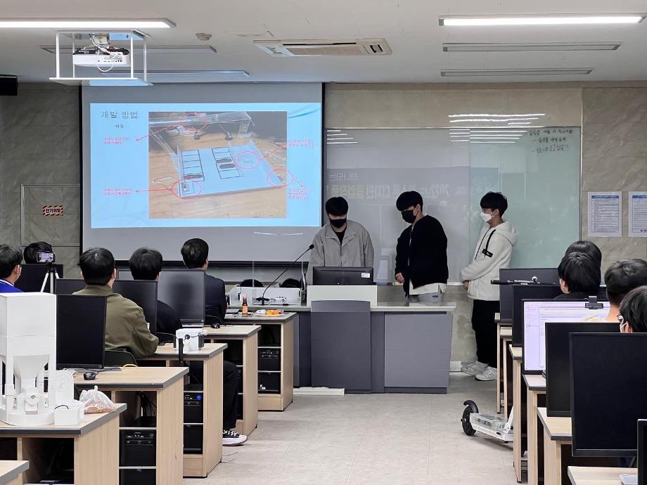본문 시작 홈으로 커뮤니티 학과소개 교육과정 학과활동 커뮤니티 진로취업 입학상담 홈페이지가이드 포토갤러리 학과공지 포토갤러리 자유게시판 동영상 게시판 포토갤러리 페이스북 트위터 프린트 2022년 캡스톤 디자인 졸업작품 발표회 전자공학과 3461 2022-11-21 2022년도 캡스톤 디자인 졸업작품 발표회를 11/16일에 진행했습니다. 총 6개의 팀이 참가하여 각 팀별로 만든 작품을 발표하는 시간을 가졌습니다. 이번 캡스톤 디자인 졸업작품 발표회는 특별하게 참가팀 모두 최초로 통과하여 졸업 요건을 얻는 성적을 거두었습니다. 참가팀 모두 수고하셨습니다! 목록 이전2023년도 학회장 선거 다음 국제학술대회 ICCAS와 KAIS 한국산학기술학회 추계학술대회 참가 담당부서 : 전자공학과 담당자 : - 연락처 : 043-649-1683 최종수정일 : 2024-10-26 만족도조사 만족도 조사 이 페이지에서 제공하는 정보에 대하여 만족하시나요? 매우만족 만족 보통 불만족 매우불만족