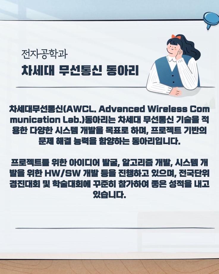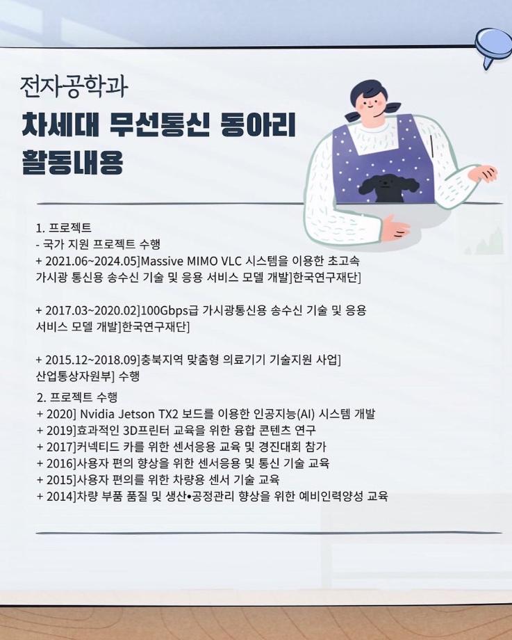 본문 시작 홈으로 커뮤니티 학과소개 교육과정 학과활동 커뮤니티 진로취업 입학상담 홈페이지가이드 포토갤러리 학과공지 포토갤러리 자유게시판 동영상 게시판 포토갤러리 페이스북 트위터 프린트 차세대 무선통신 동아리 홍보 전자공학과 3056 2023-01-17 차세대 무선통신 동아리 홍보입니다. 목록 이전주파수 동아리 홍보 다음 전자공학과 소개 및 학과 시설 소개 담당부서 : 전자공학과 담당자 : - 연락처 : 043-649-1683 최종수정일 : 2024-10-26 만족도조사 만족도 조사 이 페이지에서 제공하는 정보에 대하여 만족하시나요? 매우만족 만족 보통 불만족 매우불만족