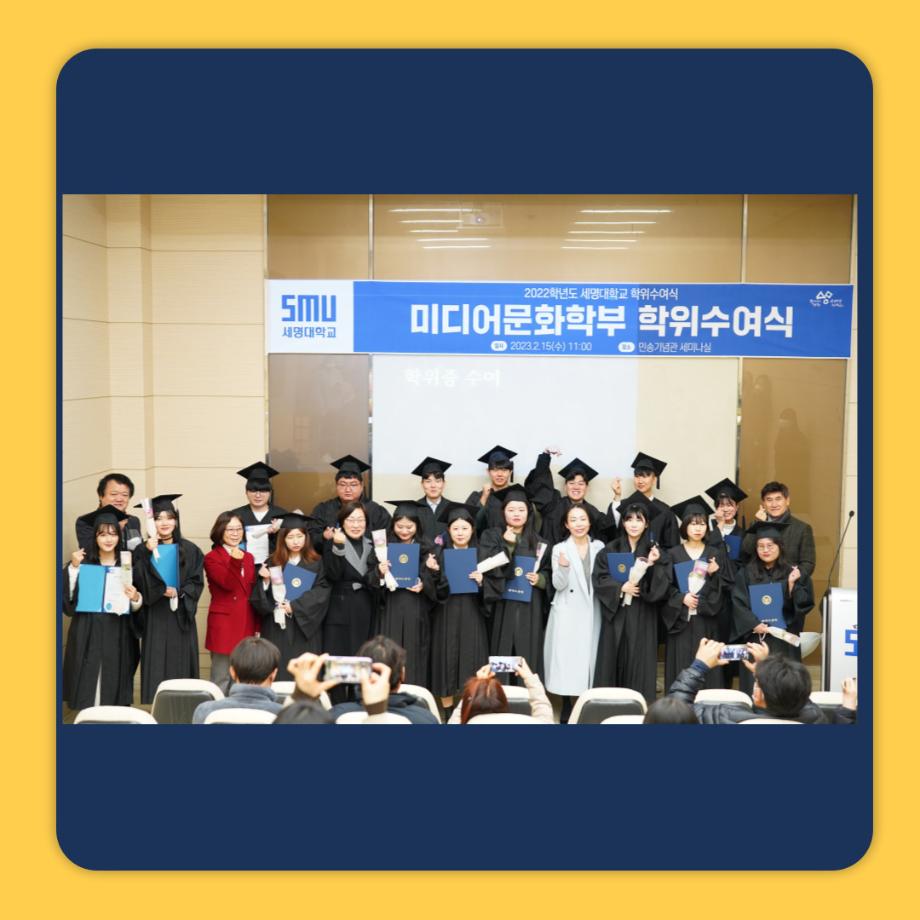 본문 시작 홈으로 학부소식 학부소개 교육과정 학부소식 커뮤니티 홈페이지가이드 학부행사 공지사항 학사일정 학부행사 미문뉴스 미문한컷 포토갤러리 학부행사 페이스북 트위터 프린트 [2월의 행사] 제29회 학위수여식 미디어문화학부 3149 2023-03-09 2023년 2월 15일, 2022학년도 미디어문화학부 학위수여식을 진행하였습니다. 선배님들의 학위수여식을 보니 저까지 아쉬운 마음이 들었습니다. 새로운 출발을 하시는 선배님들의 앞길이 항상 꽃길만 가득 차 있기를 저희 미디어 문화학부가 응원하겠습니다! 다시 한번 진심으로 졸업을 축하드립니다! 목록 이전미디어문화학부 학술제 어울림 '다시, 새롭게' 다음 [2월의 행사] 세명대학교 미디어문화학부 꿈설계학기 담당부서 : 미디어문화학부 담당자 : - 연락처 : 043-649-1760 최종수정일 : 2024-10-26 만족도조사 만족도 조사 이 페이지에서 제공하는 정보에 대하여 만족하시나요? 매우만족 만족 보통 불만족 매우불만족