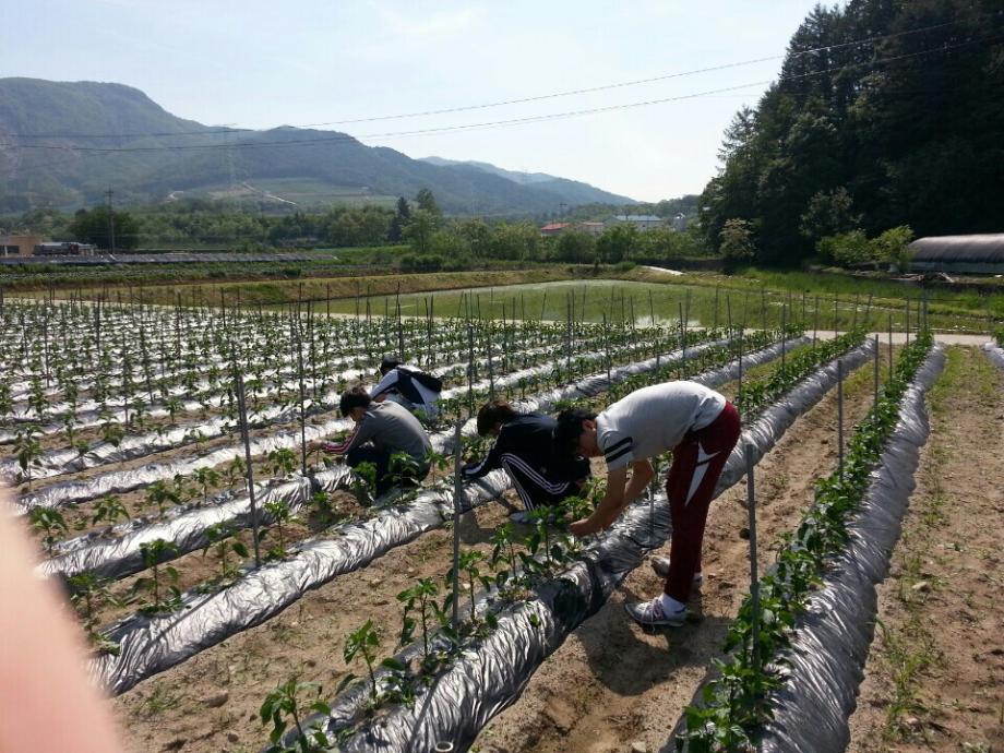 학생회 임원, 1학년 재학생 등 30여명이 참여하여 방학1리 이장님의 지도하에 부로클리 농장과 과수원 묘목정리 및 불필요한 오염물 제거, 잡풀제거 등을 하였습니다.