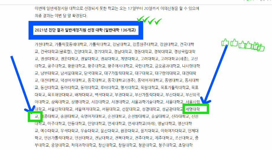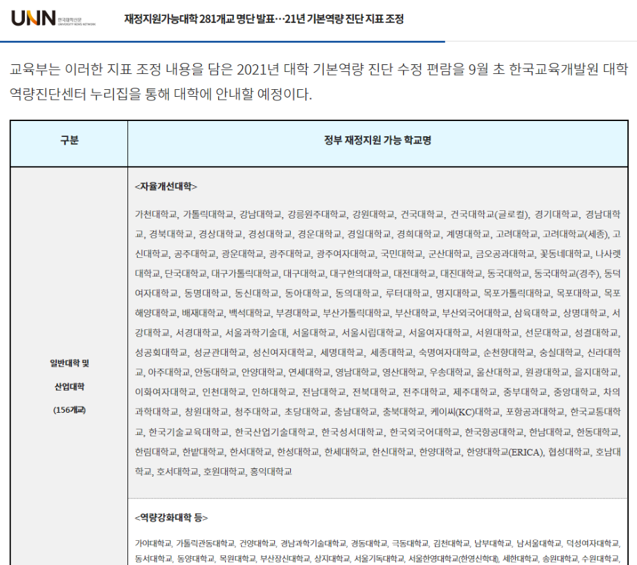 한편 이날 교육부는 대학기본역량진단 대상 161개 일반대학 가운데 세명대 등 136개교를 일반재정지원대학으로 선정했다.