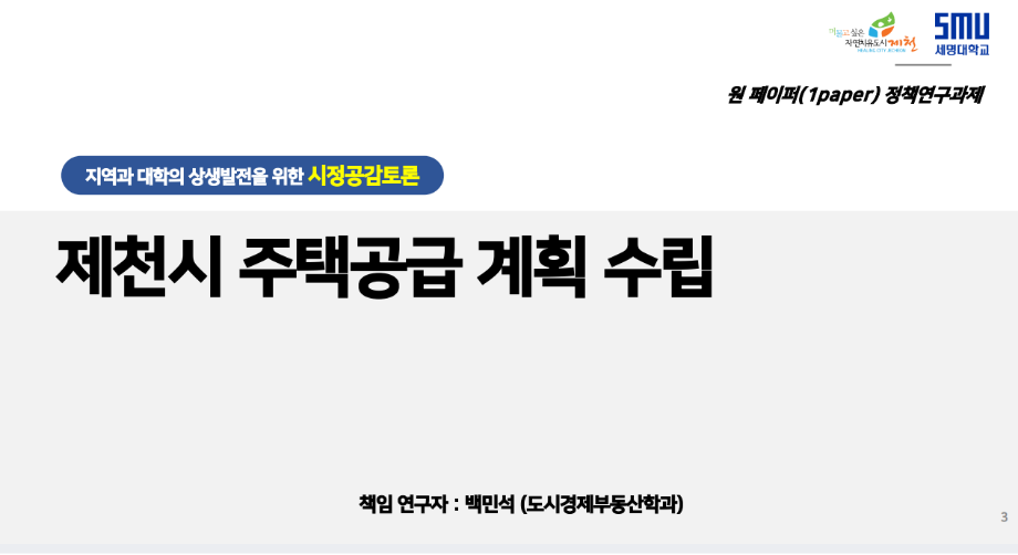 제천시 '원페이퍼 정책연구과제' 김상진 교수님, 백민석 교수님 최종선정