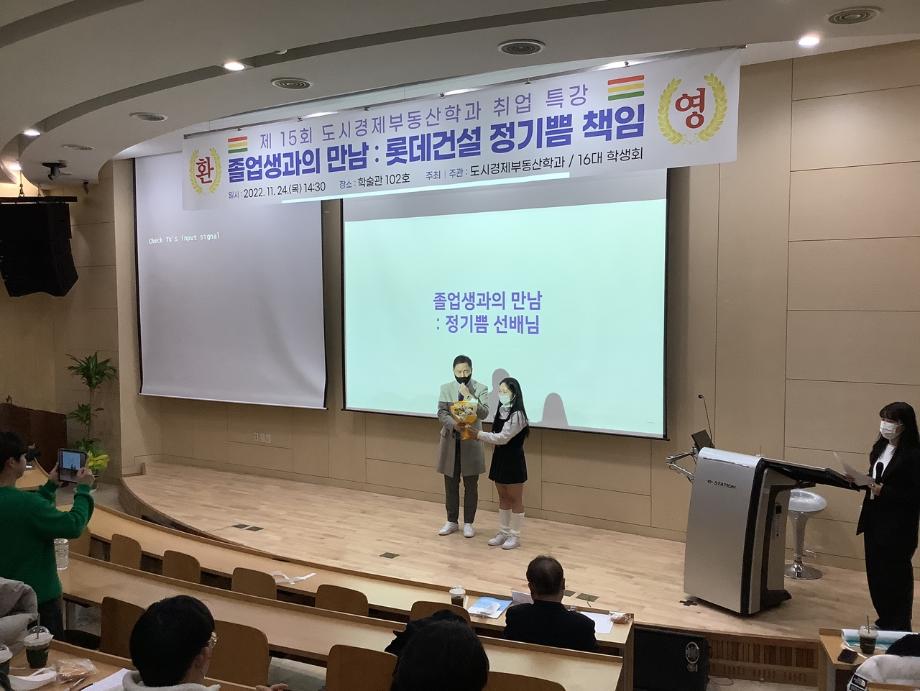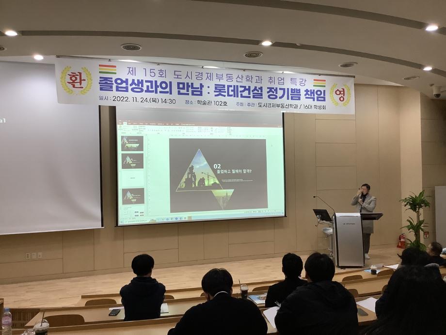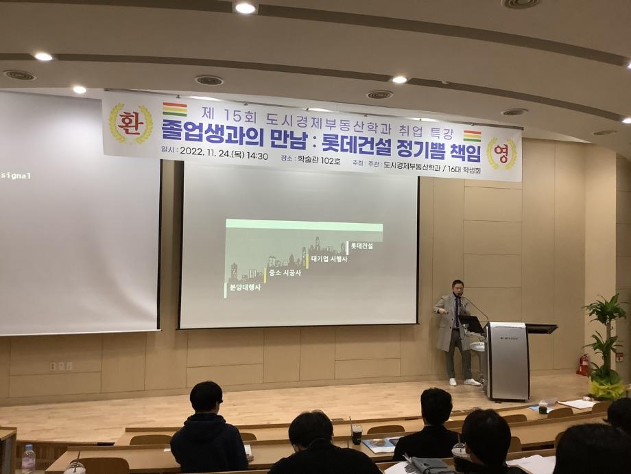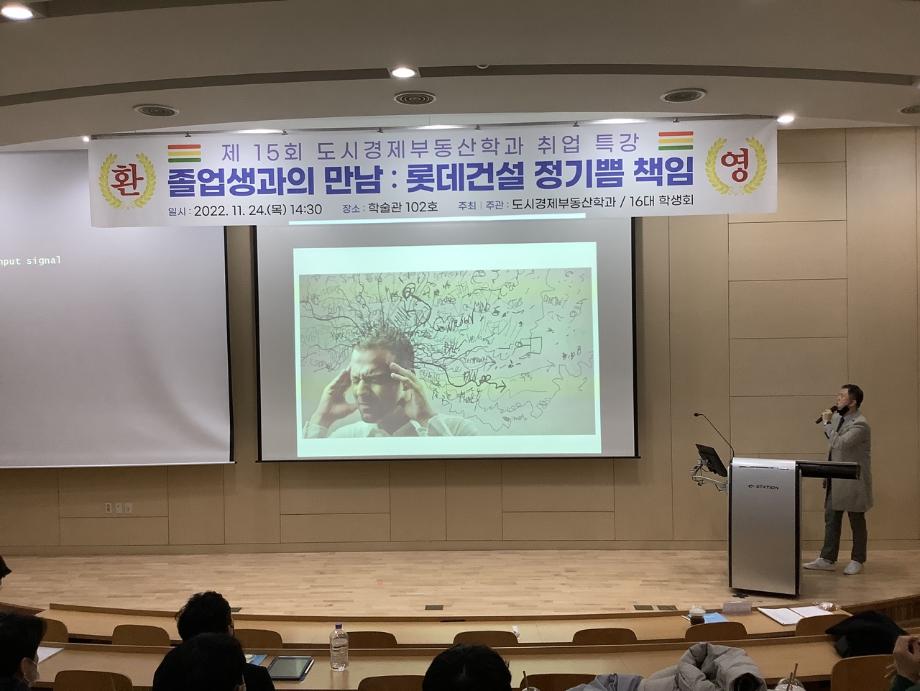 롯데건설 정기쁨책임(06학번 졸업자)께서 후배들을 위해 취업특강을 해주셨습니다.