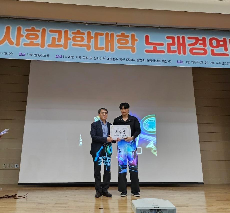 본문 시작 홈으로 학과 소식 학과소개 취업 및 진로 언론 및 보도 학과 소식 대학원 홈페이지가이드 행사사진게시판 행사사진게시판 공지사항 일반자료실 강의자료실 부동산학보 동아리 행사사진게시판 페이스북 트위터 프린트 제 2 회 사회과학대학 노래경연대회 부동산지적학과 3539 2024-05-09 일시: 2024.05.08. 16:00 ~ 18:00 장소: 학술관 제 1 컨퍼런스홀 내용: 사회과학대학에서 진행하는 노래경연대회에 부동산지적학과 2학년 김*훈 학생 1학년 박*성,신*순 학생이 참가하여 재능을 보여주는 시간이였습니다. 부동산지적학과에 끼가 많은 학생이 많다는걸 다시 한 번 알게 되는 시간이였으며 김*훈 학생은 우수상을 수상하였습니다. 정말 축하드립니다. 작성자: 부동산지적학과 조교 목록 이전2024학년도 부동산경매실무체험 1차 학술특강 다음 2024학년도 청룡체전 담당부서 : 부동산지적학과 담당자 : - 연락처 : 043-649-1784 최종수정일 : 2024-10-26 만족도조사 만족도 조사 이 페이지에서 제공하는 정보에 대하여 만족하시나요? 매우만족 만족 보통 불만족 매우불만족
