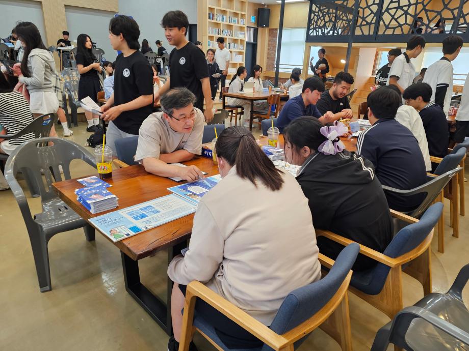 부동산지적학과 권기욱학과장님과 부동산지적학과 재학생이 세명고등학교 학생들에게 부동산지적학과에 대하여 설명하고 고등학교 학생들이 가지고 있는 입시고민을 현장에서 바로 해결해주며 소통하는 시간이였습니다.