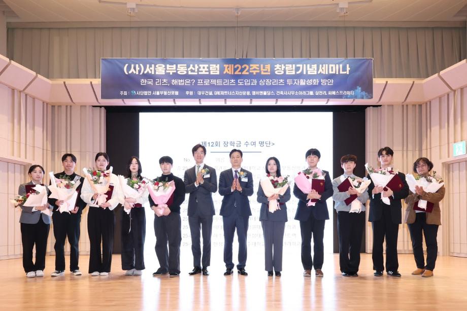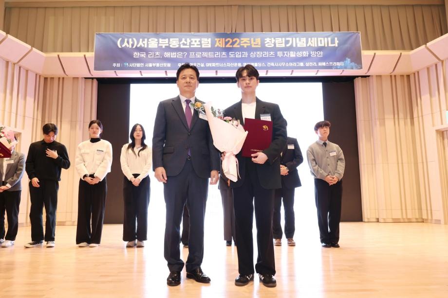 본문 시작 홈으로 학과 소식 학과소개 취업 및 진로 언론 및 보도 학과 소식 대학원 홈페이지가이드 행사사진게시판 행사사진게시판 공지사항 일반자료실 강의자료실 부동산학보 동아리 행사사진게시판 페이스북 트위터 프린트 제12회 서울부동산포럼 부동산지적학과 김관호 학생 장학생 선발 부동산지적학과 718 2025-11-07 행사명 : 제12회 서울부동산포럼 부동산학과 김관호 학생 장학생 선발 일시 : 2025.11.06. (목요일) 13:30 ~16:30 내용 : 부동산지적학과 3학년 김관호 학생이 서울부동산포럼에서 주관하는 '장학생'으로 선발되었습니다. 성실하게 학업과 학교생활에 임해온 학생은 이번 선발로 장학금 100만 원을 수여받았습니다. 학과는 장학생 선발을 진심으로 축하하며, 앞으로도 학업과 다양한 활동에 매진할 것을 응원합니다. 작성자: 부동산지적학과 조교 목록 다음 2025학년도 부동산컨설팅 특강 다음 2025년 2학기 도시경제부동산 대학원 종강모임 담당부서 : 부동산지적학과 담당자 : - 연락처 : 043-649-1784 최종수정일 : 2024-10-26 만족도조사 만족도 조사 이 페이지에서 제공하는 정보에 대하여 만족하시나요? 매우만족 만족 보통 불만족 매우불만족