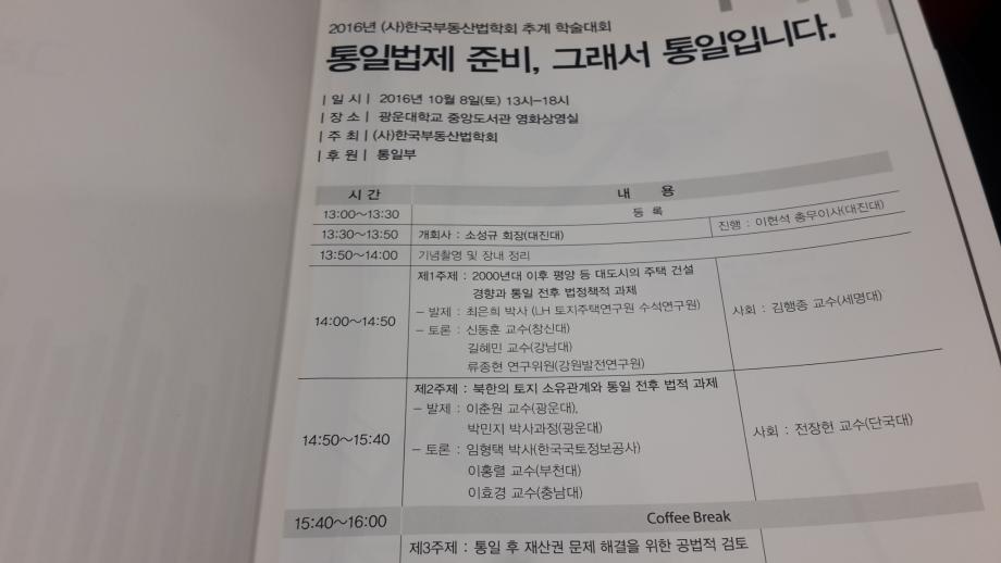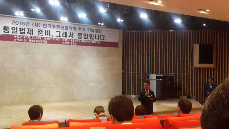 본문 시작 홈으로 학과 소식 학과소개 취업 및 진로 언론 및 보도 학과 소식 대학원 홈페이지가이드 행사사진게시판 행사사진게시판 공지사항 일반자료실 강의자료실 부동산학보 동아리 행사사진게시판 페이스북 트위터 프린트 2016년 (사)한국부동산법학회 추계 학술대회 참가 전체관리자 8739 2016-10-09 2016년 (사)한국부동산법학회 추계 학술대회 참가 일시: 2016.10.8(토) 13:00 -18:00 장소: 광운대학교 중앙도서관 영화상영실 주최: (사)한국부동산법학회 후원: 통일부 주제: 통일법제 준비, 그래서 통일입니다. 참가자: 김행종 교수 제1주제 사회자 목록 다음 제14회 한중일 거주문제 국제회의 현장답사 이전2016학년도 2학기 책임지도교수제 행사 개최 담당부서 : 부동산지적학과 담당자 : - 연락처 : 043-649-1784 최종수정일 : 2024-10-26 만족도조사 만족도 조사 이 페이지에서 제공하는 정보에 대하여 만족하시나요? 매우만족 만족 보통 불만족 매우불만족