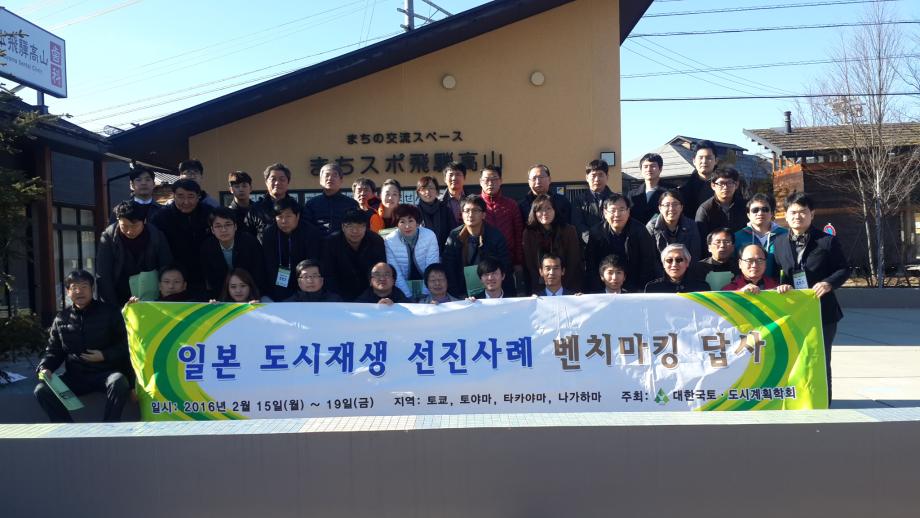 본문 시작 홈으로 학과 소식 학과소개 취업 및 진로 언론 및 보도 학과 소식 대학원 홈페이지가이드 행사사진게시판 행사사진게시판 공지사항 일반자료실 강의자료실 부동산학보 동아리 행사사진게시판 페이스북 트위터 프린트 일본 도시재생 선진사례 벤치마킹 프로그램 참가 전체관리자 8746 2016-02-21 일본 도시재생 선진사례 벤치마킹 프로그램 참가 0 일시: 2016년 2월 15일-19일 0 주관: 대한국토.도시계획학회 0 주요방문기관: 국토교통성, 민간도시개발추진구고(MINTO), 토야마 시청, 마찌즈쿠리토야마, 카나자와시민예술촌, 타가야마 시청, 나가하마 마찌즈쿠리 등 0 참가자: 세명대 김행종 교수, 한양대 구자훈 교수, 목원대 최봉문 교수 등 연구원, 시도 도시재생 공무원 등 목록 다음 2016꿈설계학기 1일차(2) 이전2016 부동산학과 학위수여식 담당부서 : 부동산지적학과 담당자 : - 연락처 : 043-649-1784 최종수정일 : 2024-10-26 만족도조사 만족도 조사 이 페이지에서 제공하는 정보에 대하여 만족하시나요? 매우만족 만족 보통 불만족 매우불만족