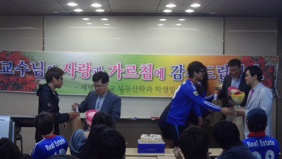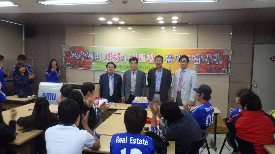 본문 시작 홈으로 학과 소식 학과소개 취업 및 진로 언론 및 보도 학과 소식 대학원 홈페이지가이드 행사사진게시판 행사사진게시판 공지사항 일반자료실 강의자료실 부동산학보 동아리 행사사진게시판 페이스북 트위터 프린트 부동산학과 스승의날 행사 전체관리자 7502 2012-05-21 2012년 5월 17일(목) 저녁4시부터 "스승의 날 행사"를 사회과학관 122호,123호에서 개최하였다. 이날 학과 교수님(김행종, 권기욱, 김상진, 백민석 교수님)과 조교 선생님, 재학생 전원이 참석한 가운데, "스승의 은혜" 와 정성스레 준비한 꽃다발, 교수님께 드리는 글, 선물 증정식, 케익자르기, 감사의 축배(세부주), 치킨, 피자 등 뜻있고 의미있는 감사의 시간을 가졌다. ♥ 교수님!!! 사랑합니다.!!! 목록 이전지역개발은 이렇게!!! 이전우리사회의 문제? 담당부서 : 부동산지적학과 담당자 : - 연락처 : 043-649-1784 최종수정일 : 2024-10-26 만족도조사 만족도 조사 이 페이지에서 제공하는 정보에 대하여 만족하시나요? 매우만족 만족 보통 불만족 매우불만족