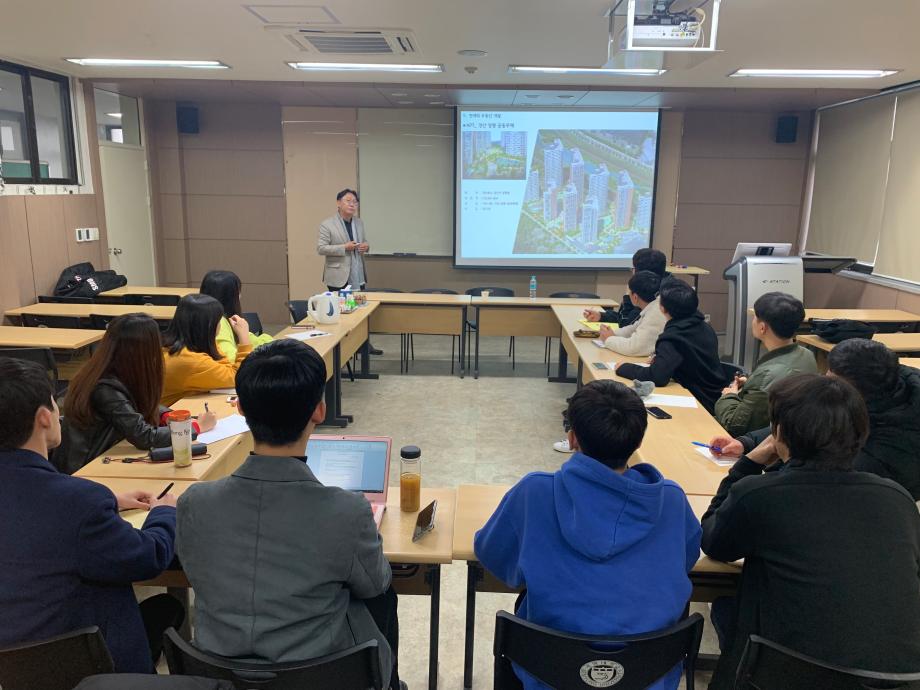 본문 시작 홈으로 학과 소식 학과소개 취업 및 진로 언론 및 보도 학과 소식 대학원 홈페이지가이드 행사사진게시판 행사사진게시판 공지사항 일반자료실 강의자료실 부동산학보 동아리 행사사진게시판 페이스북 트위터 프린트 2019학년도 제1회 학술특강(부동산자산관리실무체험 "부동산개발의 현재와 미래") 부동산학과 8389 2019-04-16 ◎ 2019학년도 제1회 학술특강 시행 부동산학과에서는 “부동산자산관리실무체험” 교과목 관련하여 아래와 같이 학술특강을 시행하였습니다. 부동산 산업 실무자의 특강을 통한 부동산 산업을 간접 체험하고, 관련 지식을 보다 심화 학습하였습니다. ▸ 일시 : 2019년 4월 05일(금) 09:30 ~ 12:30 ▸ 주제 : 부동산개발의 현재와 미래 ▸ 강연자 : 주) 건축사사무소 아라그룹 대표이사 왕정한 목록 이전2019학년도 부동산학과MT 현장 사진 다음 2019학년도 부동산학과 제2회 학술특강(부동산자산관리실무체험 "LA, San Francisco 지역 Medical Center 투자의 건" 담당부서 : 부동산지적학과 담당자 : - 연락처 : 043-649-1784 최종수정일 : 2024-10-26 만족도조사 만족도 조사 이 페이지에서 제공하는 정보에 대하여 만족하시나요? 매우만족 만족 보통 불만족 매우불만족