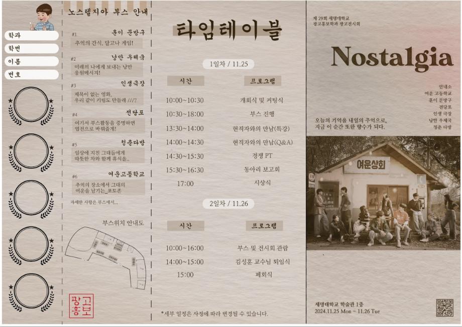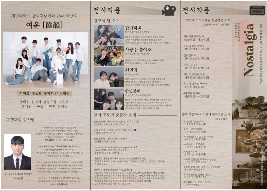 본문 시작 홈으로 특별CC프로그램 매력적인 학과소개 흥미로운 교육과정 특별CC프로그램 We can 취업 따뜻한 커뮤니티 홈페이지가이드 광고전시회 광고전시회 광고영상 제작실습 광고디자인 자격증취득 C&E(도전!경험!) 작품 작품 활동 작품 페이스북 트위터 프린트 [2024년도]제29회 광고전시회 광고홍보학과 3981 2024-12-04 제29회 광고전시회 노스탤지아 목록 이전[2023년도]제28회광고전시회 다음 [2025년도]제30회광고전시회